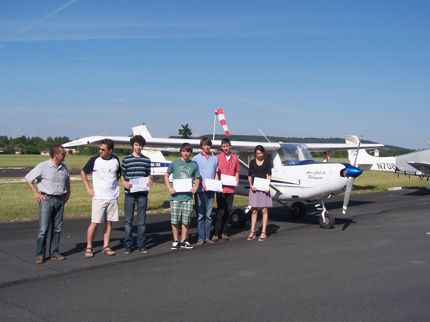 Sur l’aérodrome de Périgueux ce Week-end c’était l’effervessence, un quarantaine d’avions en stationnement sur le tarmac, dont un DC3 au couleur d’Air France. Une occasion révée pour réunir le samedi 26 juin les lauréats du BIA 2010. Remise d’attestation de fin de formation en attendant le diplôme qui sera délivré au mois de septembre, et bien sur un petit buffet pour fêter dignement cet évènement.