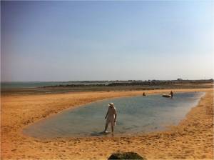 Un coup de fil pour trouver un taxi et nous voilà du coté de La Brée des bains, au milieu des marchands ambulants, c’est jour de marché. Pause déjeuner au coeur du village, puis direction, par la voie piétonne longeant le littoral, Saint Denis d’Oléron.