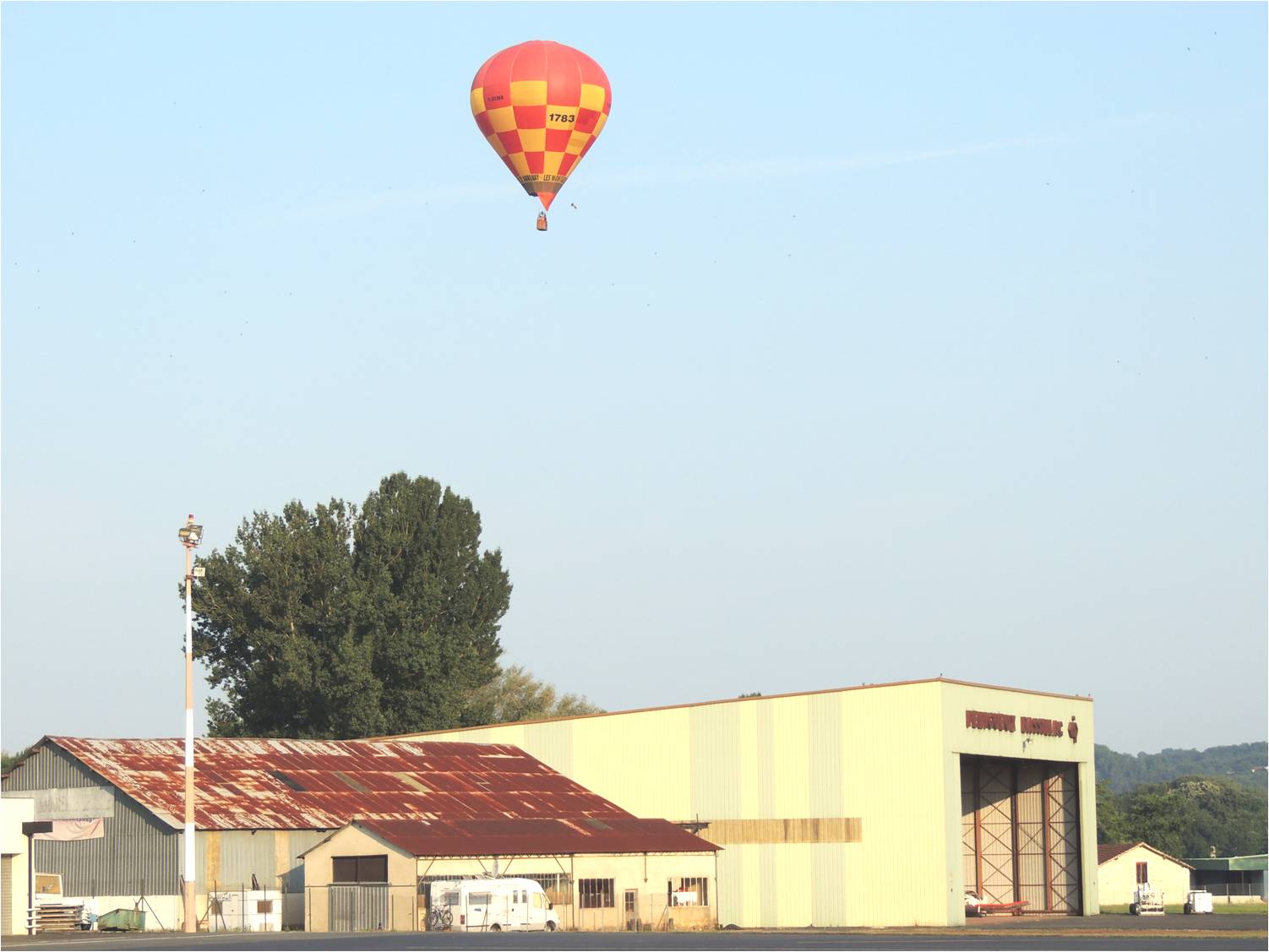 Avis aux amateurs du vol matinal en avion, vous n’êtes pas toujours seul à profiter du calme de l’air au lever du jour; et pour preuve cette montgolfière qui a transité par la verticale de l’aérodrome de Périgueux. C’est le meilleur moment de la journée pour profiter de notre magnifique Périgord. Il faut parfois se faire violence pour sortir du lit de si bon matin, mais vous ne regretterez pas…
