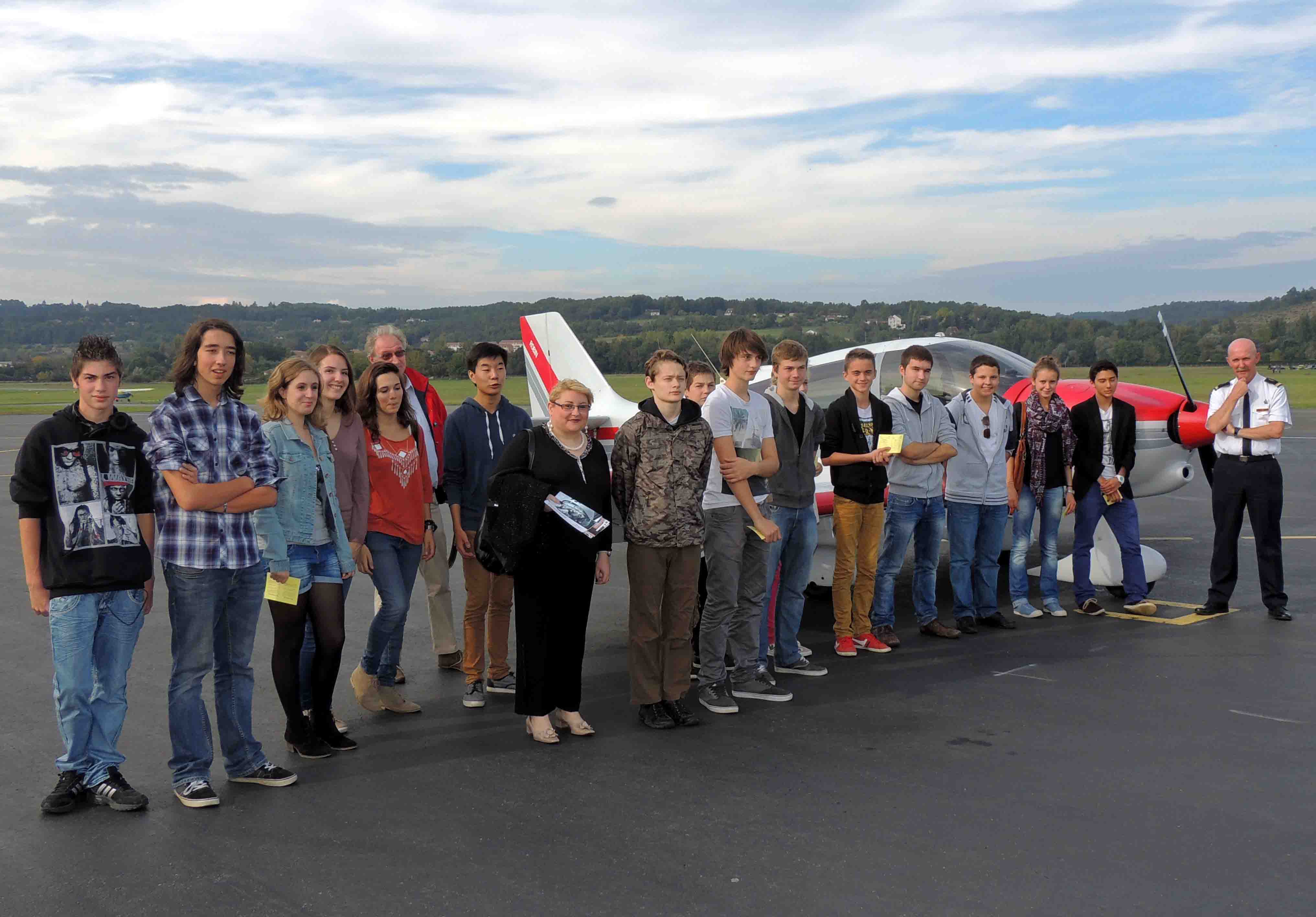 En ce samedi 19 octobre, une quarantaine de jeunes a foulée le tarmac de l’aérodrome de Périgueux-Bassillac. C’est dans le cadre de l’opération « L’aéronautique, une avenir pour les jeunes » que des jeunes collégiens et lycéens de la Dordogne et même des départements limitrophes se sont retrouvés à l’aéroclub de Périgueux. Le major MARS de la base 106 de Bordeaux animait le stand de l’armée de l’air et l’ingénieur F. DREYDEMY représentant du rectorat renseignait les jeunes sur les diverses formations aéronautiques présentent au niveau Aquitaine et également externe à notre région.