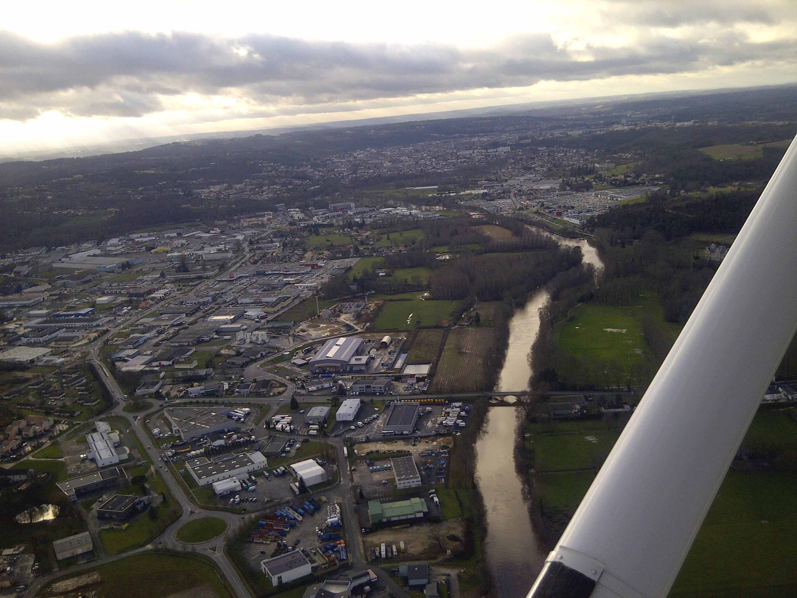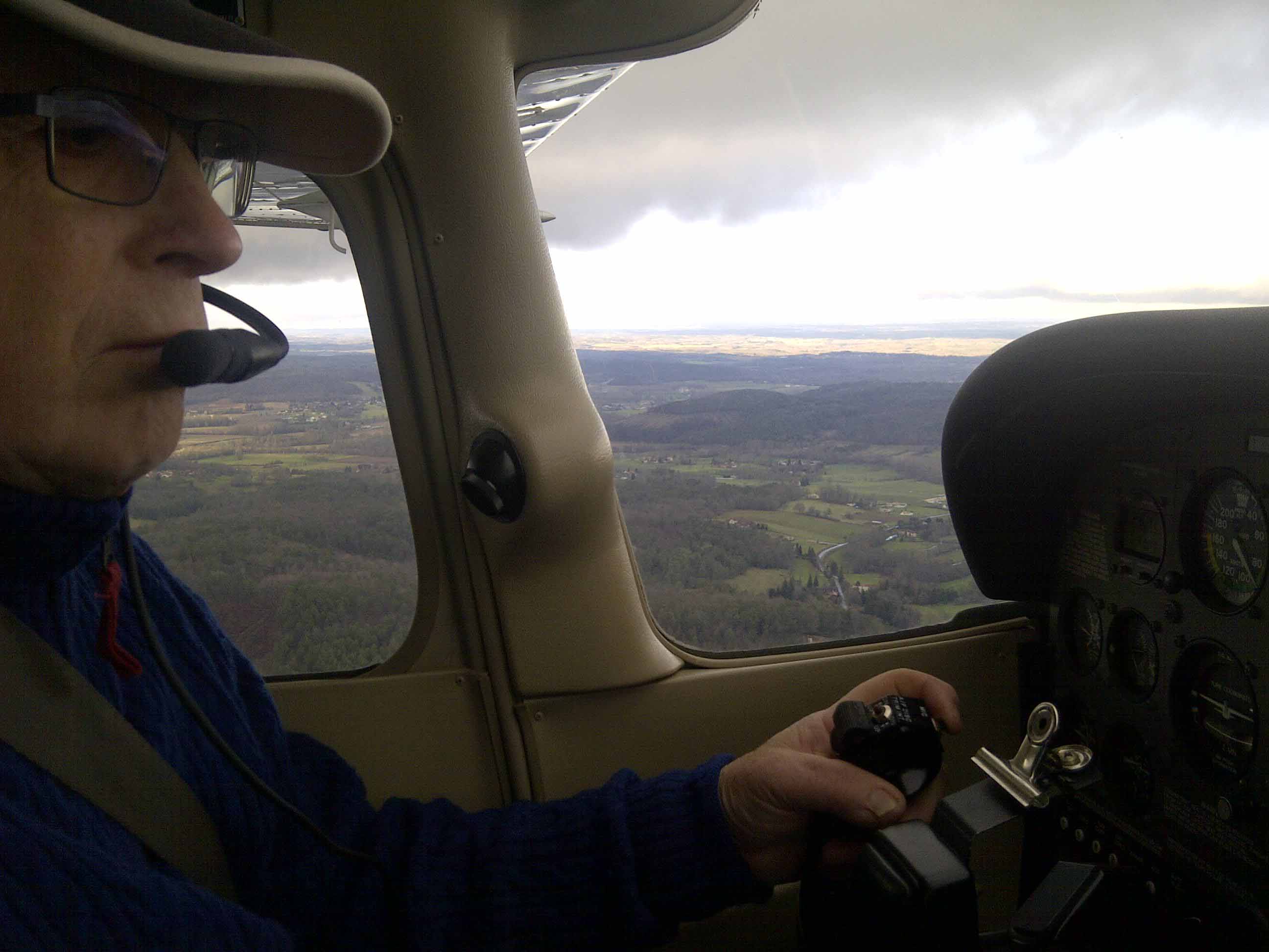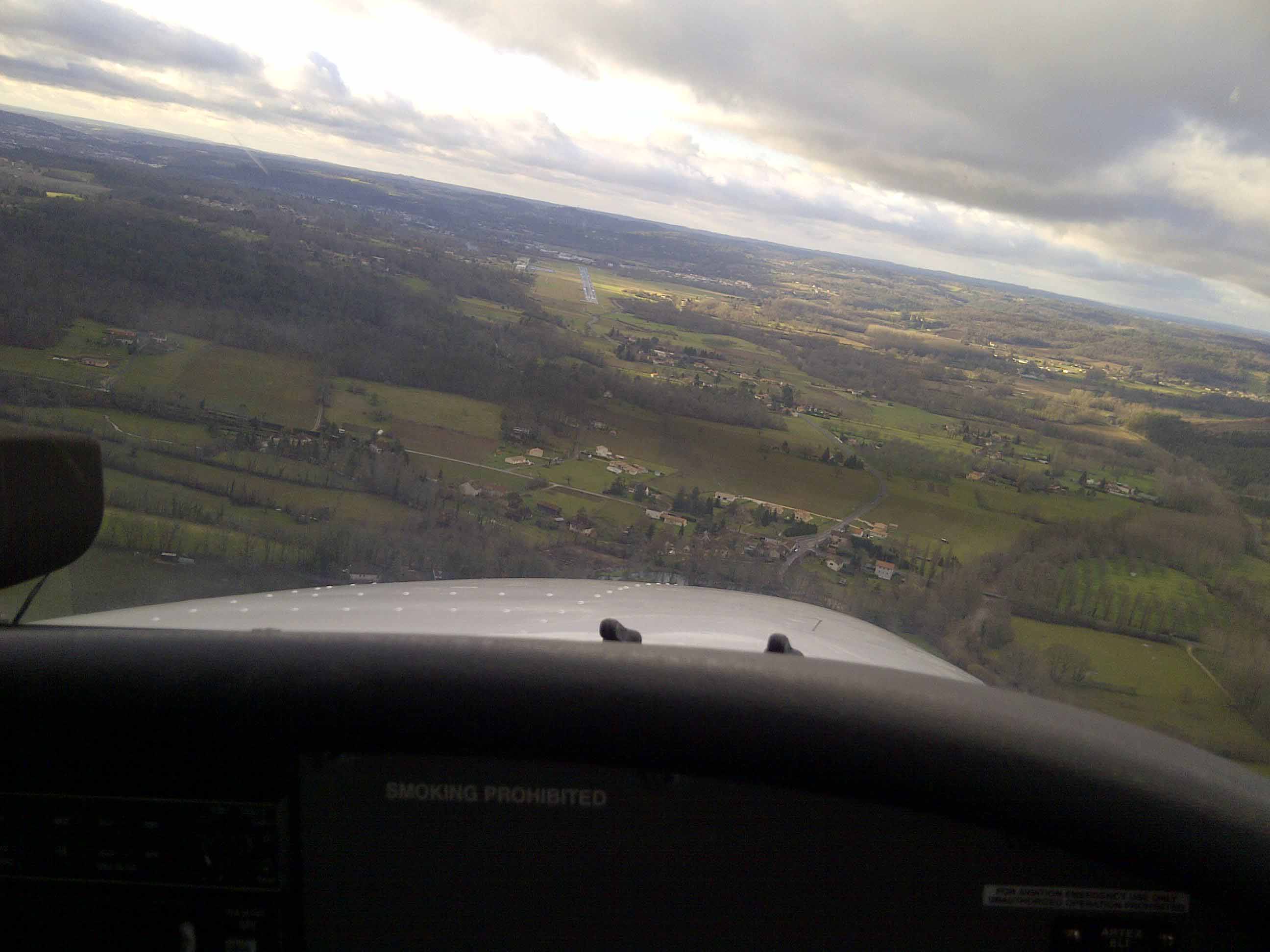 L’hiver, surtout sur une période où les perturbations pluvieuses se succèdent, n’est guère propice aux voyages, c’est la saison idéale pour faire un entraînement en tour de piste à partir de l’aérodrome de Périgueux-Bassillac; histoire de garder la main comme on dit. En samedi après-midi, l’horizon étant dégagé, deux pilotes courageux de l’aéroclub de Périgueux; Bernard et votre Webmaster en ont profité pour mettre en l’air le Cessna 172. Au deuxième vol, comme j’étais passager en place droite, j’en ai profité pour faire quelques photos le long du circuit de piste. Rien de bien original, me direz-vous ! C’est simplement un témoignage du façonnage d’une partie du paysage immédiat de l’aérodrome par l’homme.