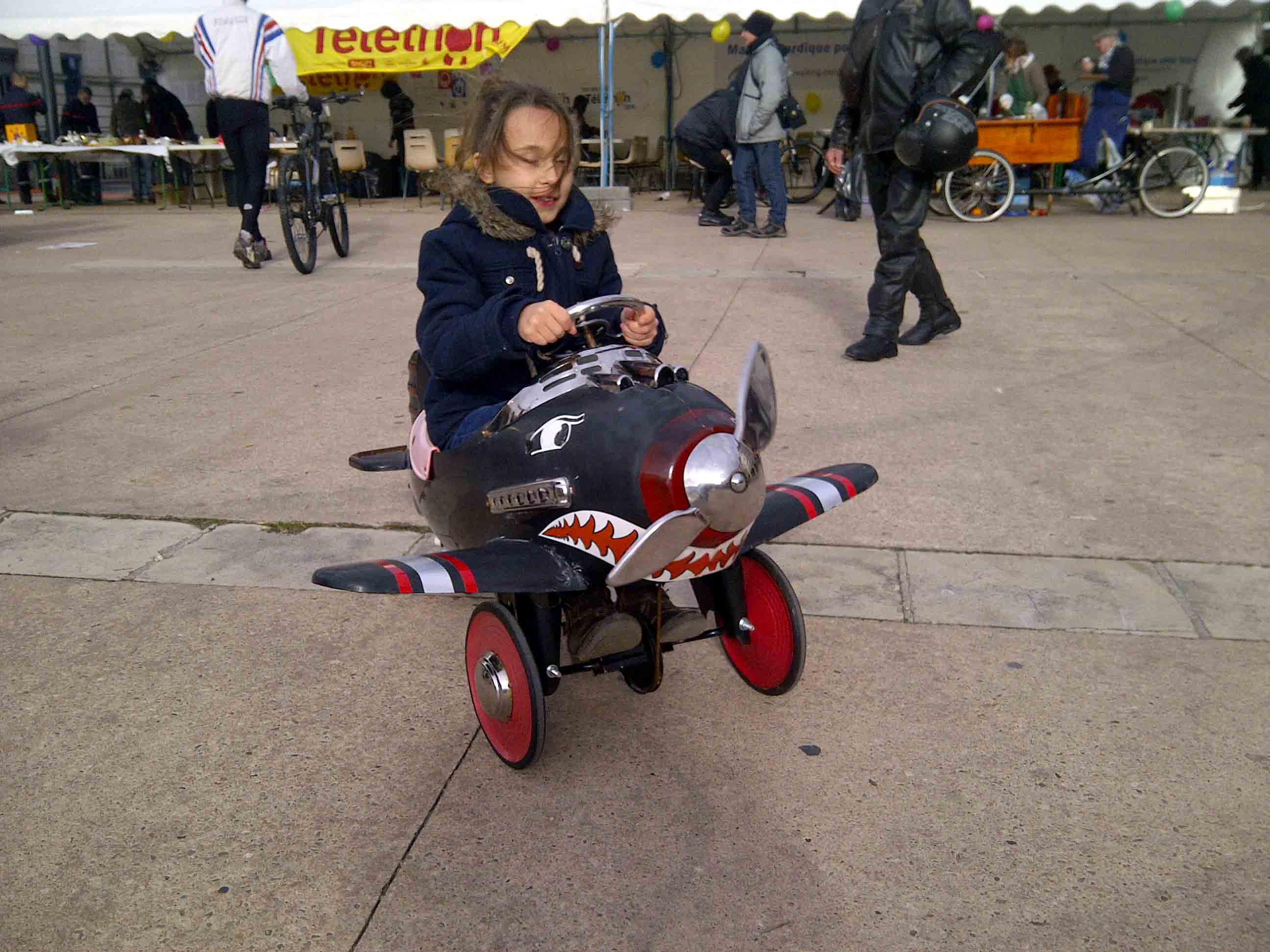 Les plus jeunes ont pu essayer notre avion à pédales que nous avions décroché du fameux triporteur qui stationne aux quatre coins de l’agglomération périgourdine. L’association remercie toutes les personnes qui ont participé à cette tombola qui a permit d’alimenter la cagnotte périgourdine du téléthon. Bravo également aux bénévoles qui ont bravé le froid pour animer notre stand.