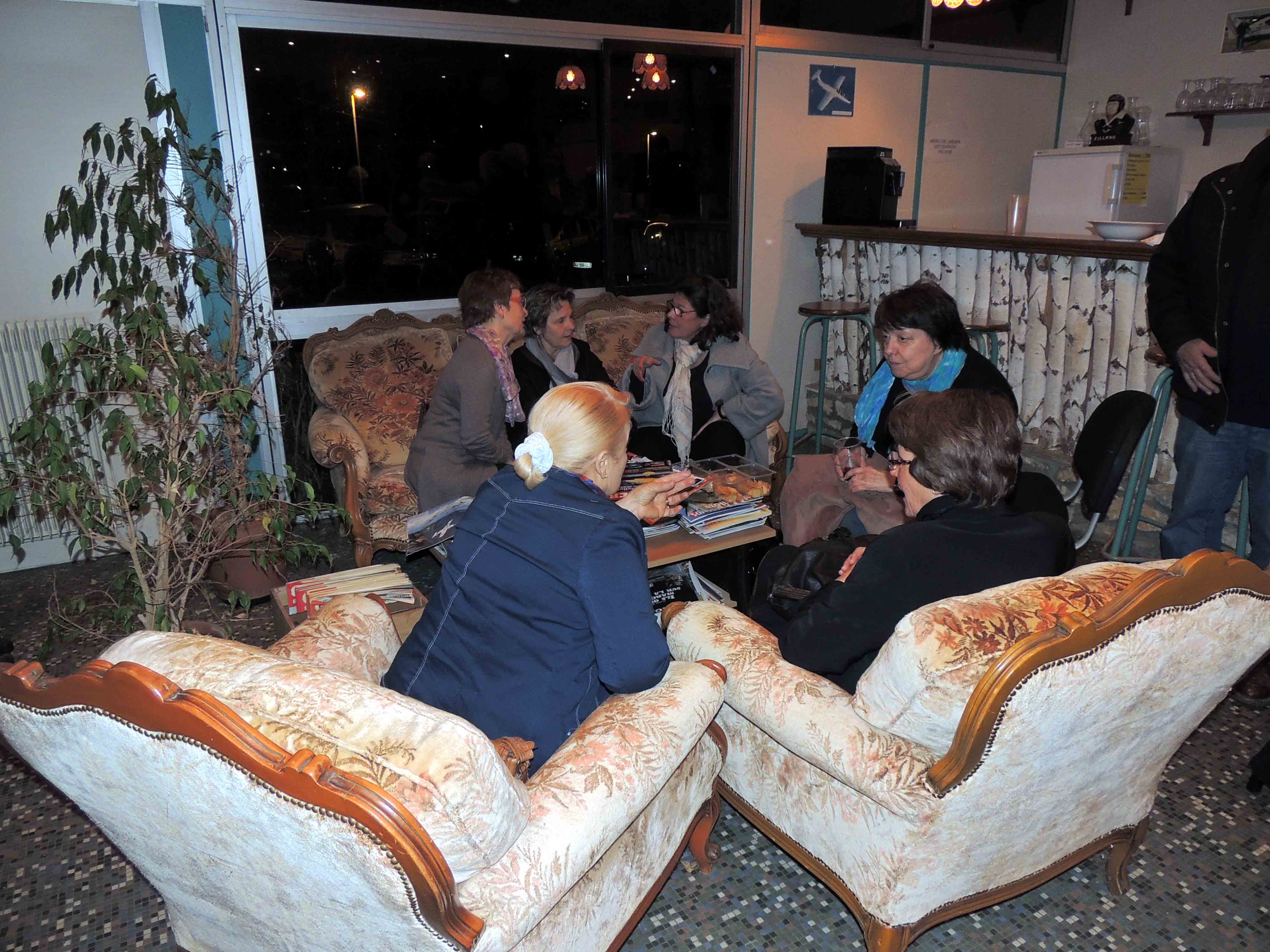Cette assemblée générale ne pouvait pas se terminer sans un moment convivialité entre les pilotes et leurs épouses, comme le montre les photos, où l’on aperçoit ces dames entrain de faire salon, pendant que les messieurs mettent la table ou font la plonge. Il est vrai que le lendemain, dimanche 8 mars, c’était la journée de la femme.