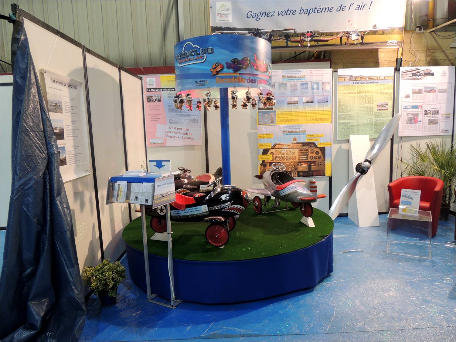 En effet le stand de l’aéroclub est prêt pour accueillir le public de la foire exposition de Périgueux-Marsac. Les enfants pourront profiter du manège « L’escadrille des petits doudous ». Venez nombreux nous rejoindre les pilotes sur le stand, d’autant que des baptêmes de l’air en avion sont à gagner.