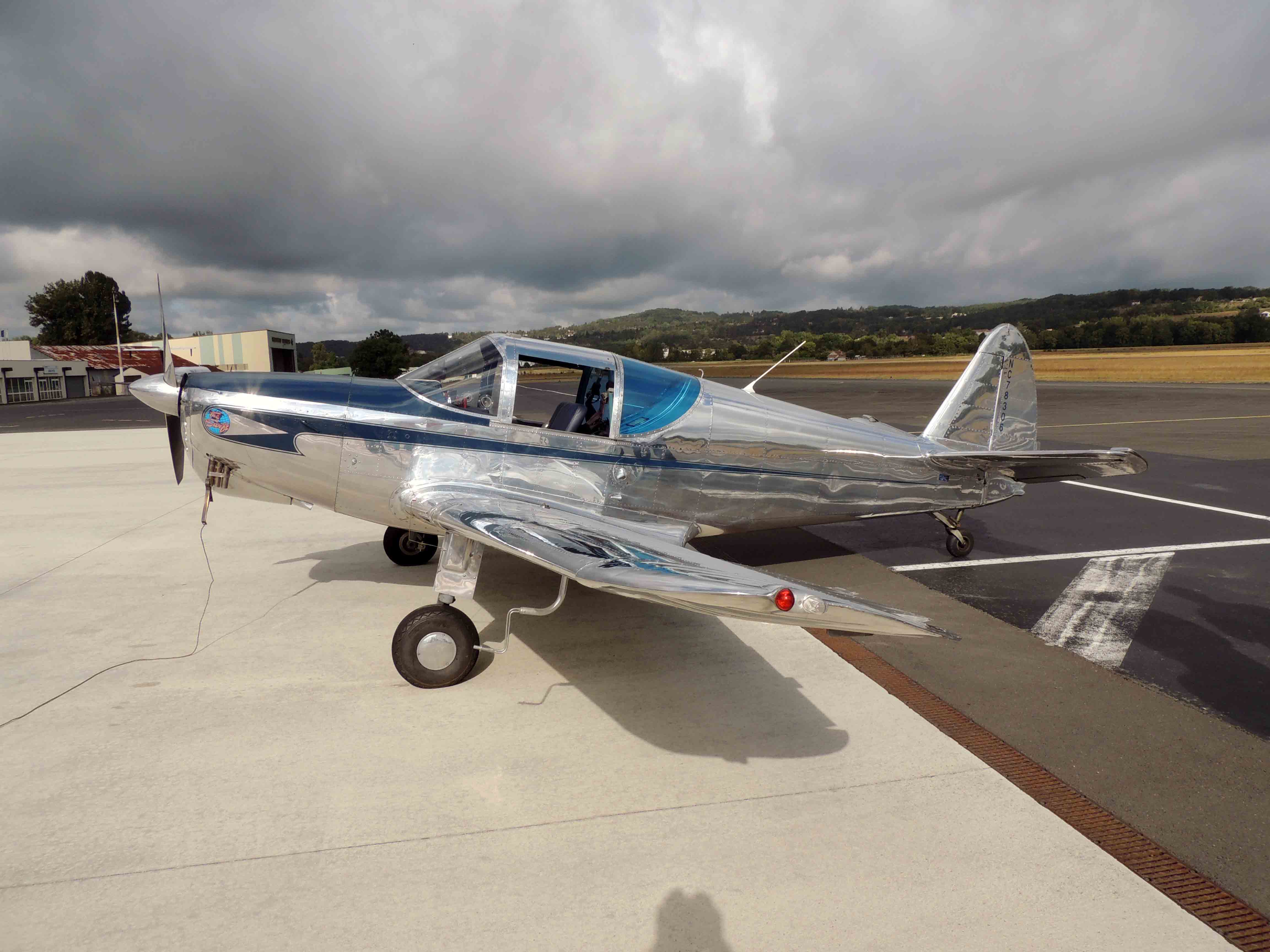 C’était également les premiers vols d’un nouvel avion arrivé sur la plateforme, un SWIFT tout métal de 1946. Un avion de collection au bruit particulier que l’on reconnait facilement, quand celui-ci est en vol. En lui souhaitant beaucoup d’autres vols au dessus de notre Périgord.