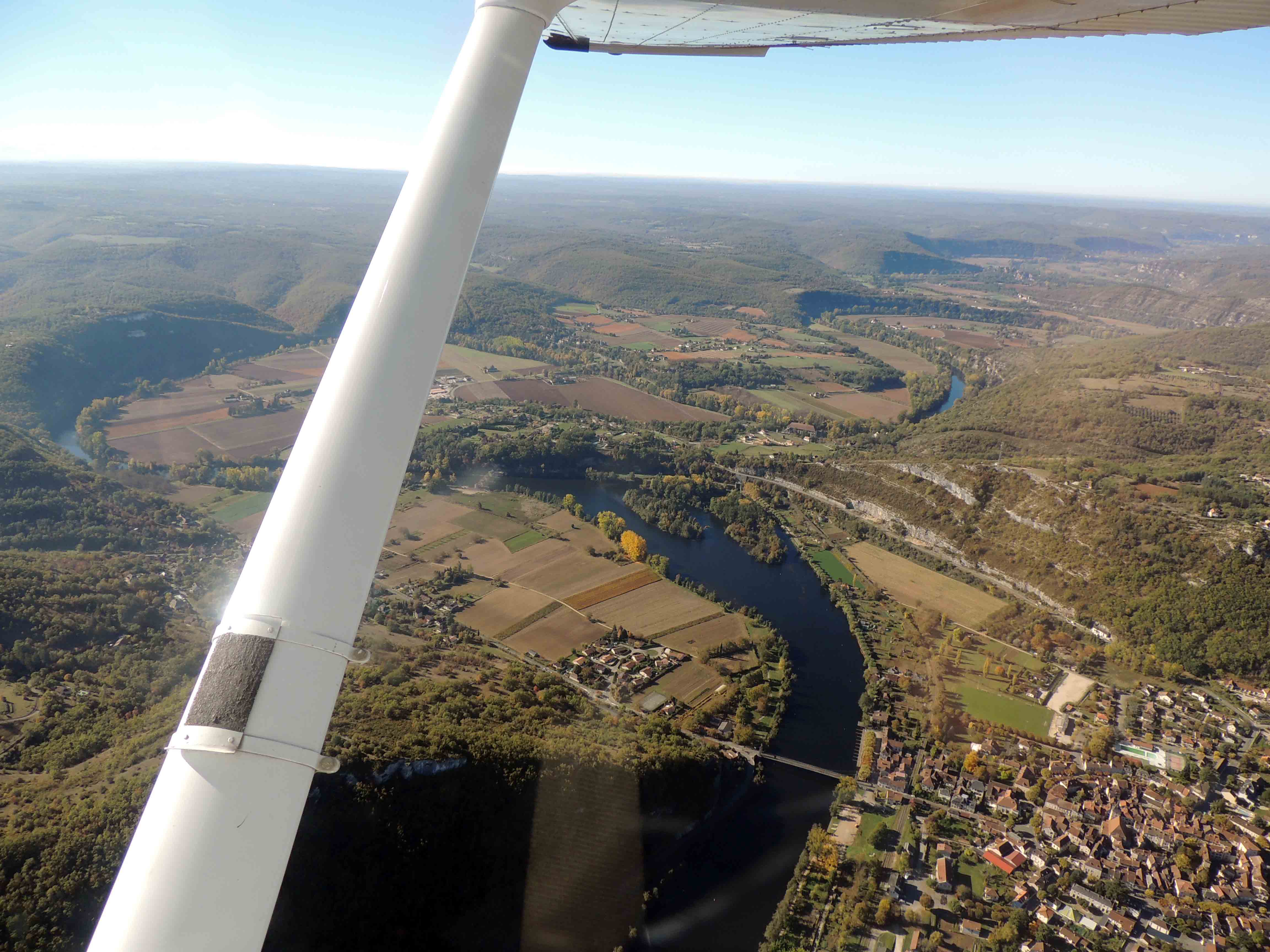 Ces pilotes de l’aéroclub de Périgueux-Bassillac ont parfois des idées bizarres ou des envies de restaurant où la tête de veau est au menu. Donc, direction Villefranche de Rouergue après dissipation du brouillard qui enveloppait l’aérodrome de Bassillac. Quelques bancs subsistaient encore dans les vallées, mais l’aérodrome de destination était dégagé et éclairé par ce magnifique soleil de fin octobre. Tout était de notre coté pour faire un vol agréable, passer un bon samedi et faire un repas copieux au restaurant de l’aérodrome. Certains prennent la voiture pour faire un bon resto (comme on dit), nous c’est un avion de l’aéroclub…..