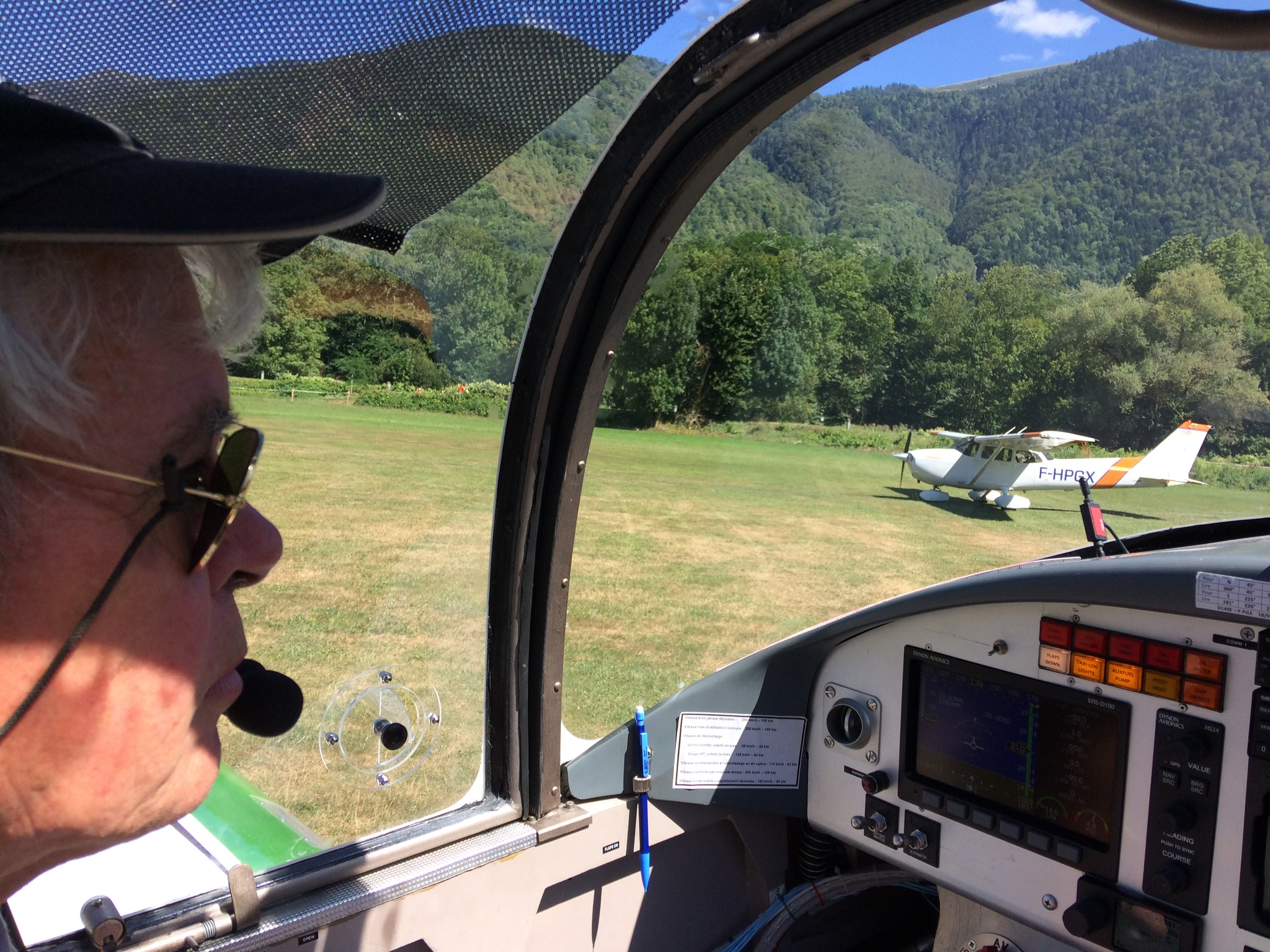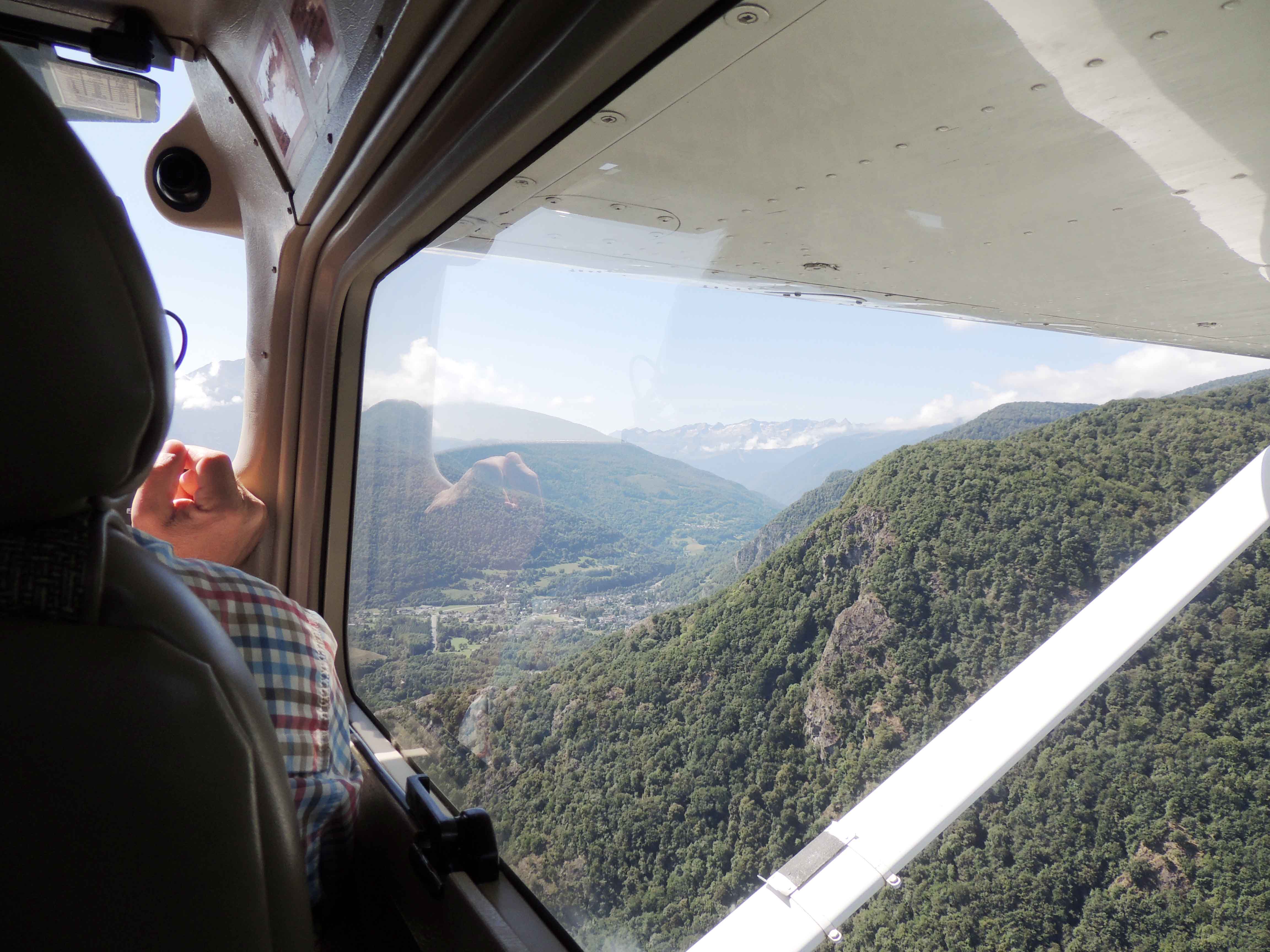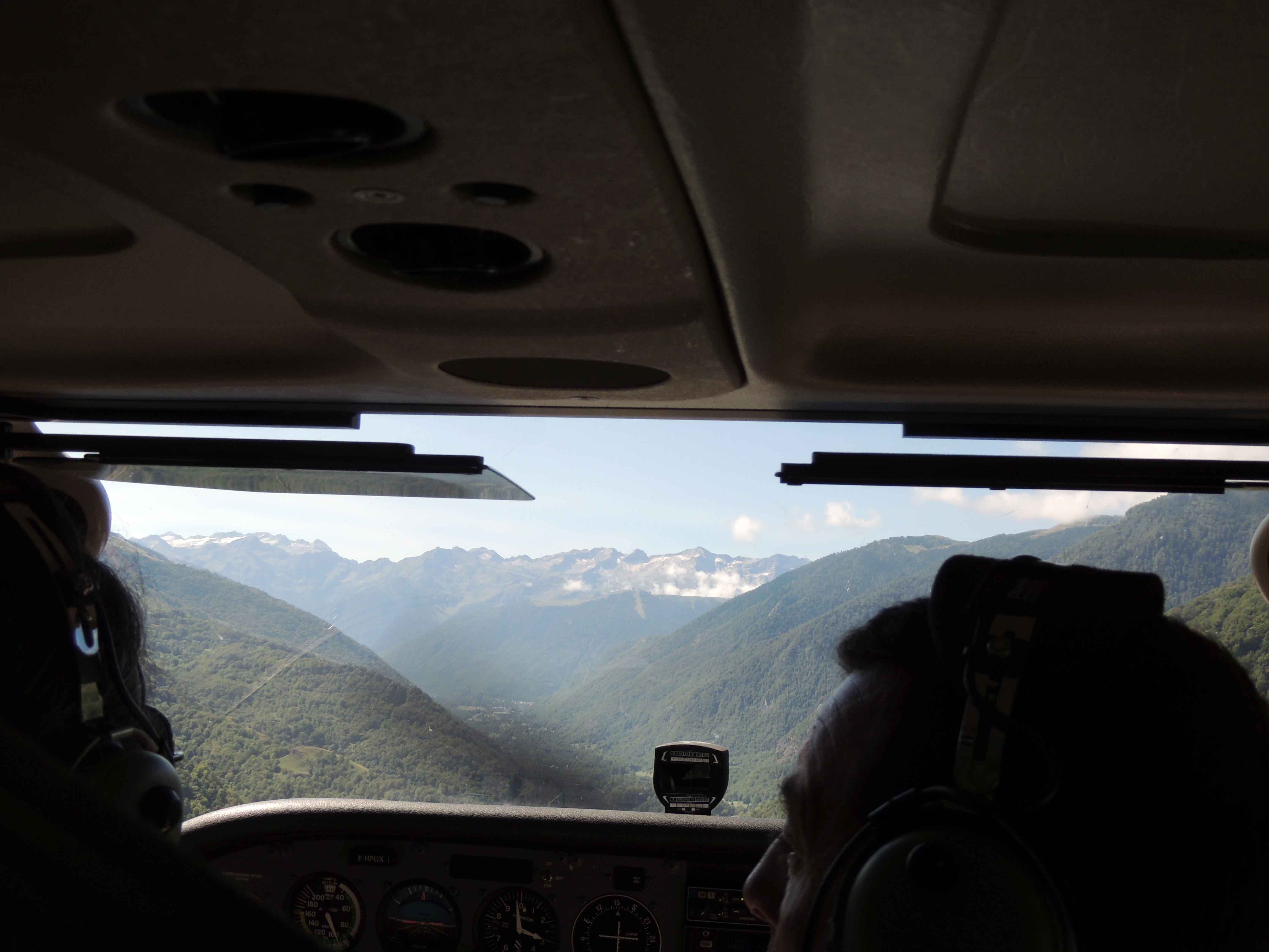 En ce dimanche 20 Août, c’était le temps idéal pour se rendre à Bagnères de Luchon depuis Périgueux. Valérie avait organisé les équipages, s’était renseigné sur la météo de la vallée et surtout retenu pour nous le restaurant. Tout était prêt pour la navigation, le briefing pour l’arrivée avec Jean-François notre instructeur, car le tour de piste n’est pas standard au creux de cette vallée encaissée et de plus la piste courte. Le Cessna 172 avait décollé le premier de Périgueux avec Guillaume aux commandes et Jean-François en place droite, suivi du Mousquetaire avec Jean-Louis et Patrice. Cap direct sur Saint Gaudens avant d’identifier la bonne vallée et de poursuivre sur la droite de la vallée en direction de CIERP, puis de LUCHON. Voici quelques photos de notre arrivée sur LUCHON et de notre retour vers Périgueux. Une navigation à faire et très formatrice sur le respect des procédures du vol en montagne et la maniabilité de l’avion.