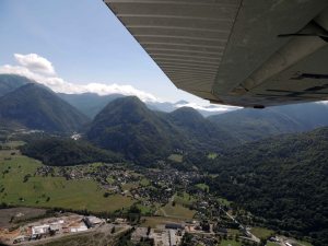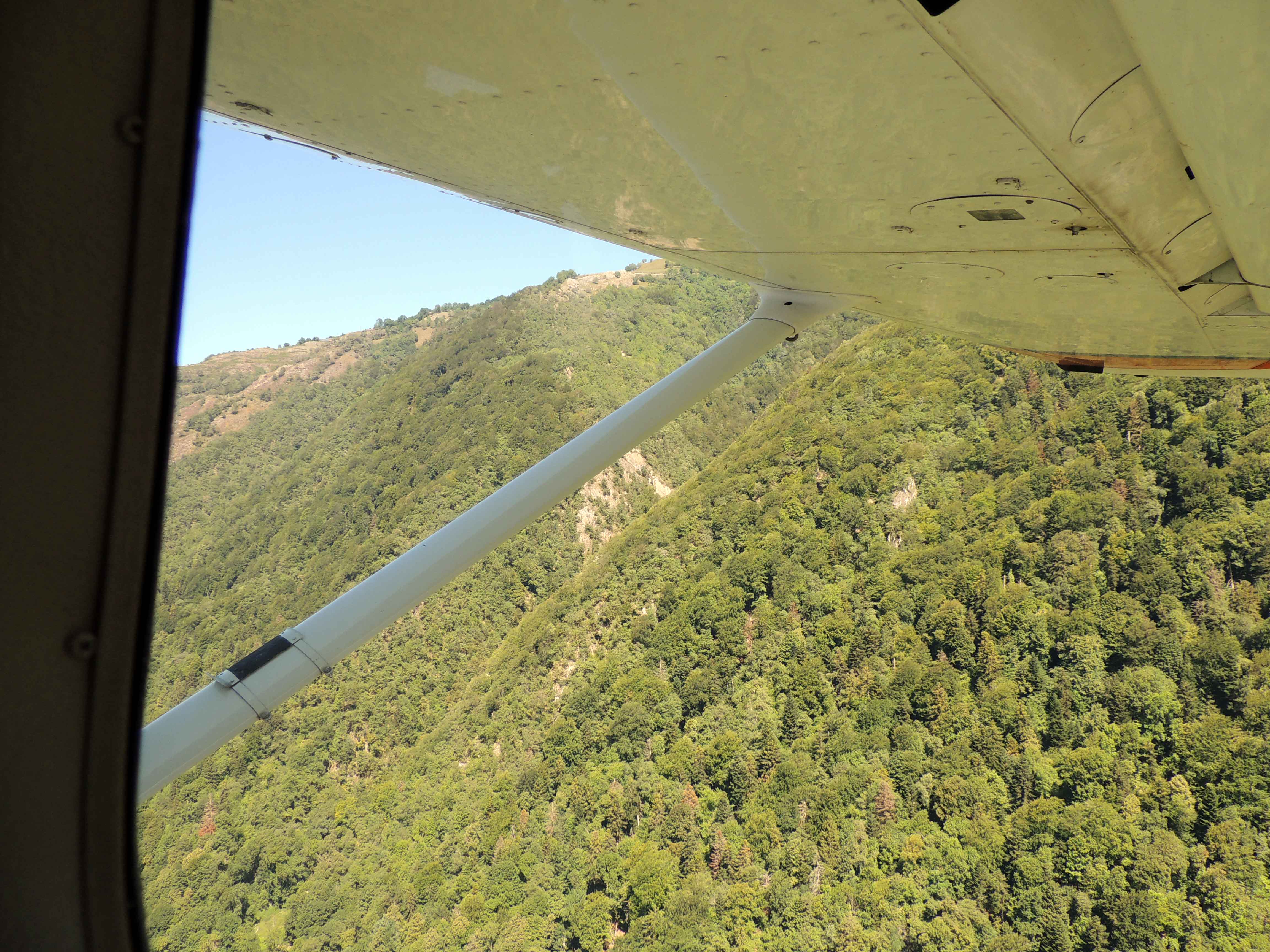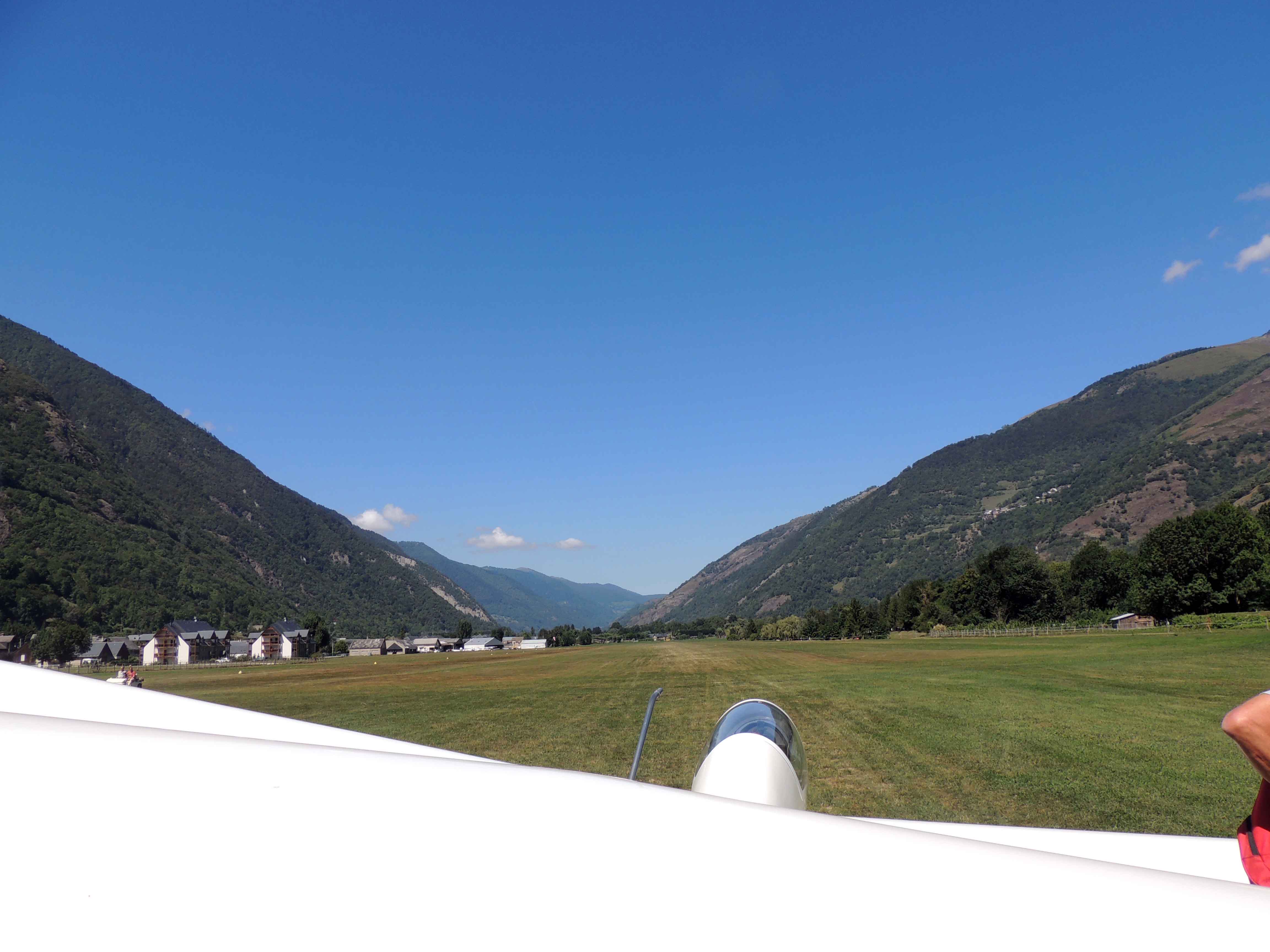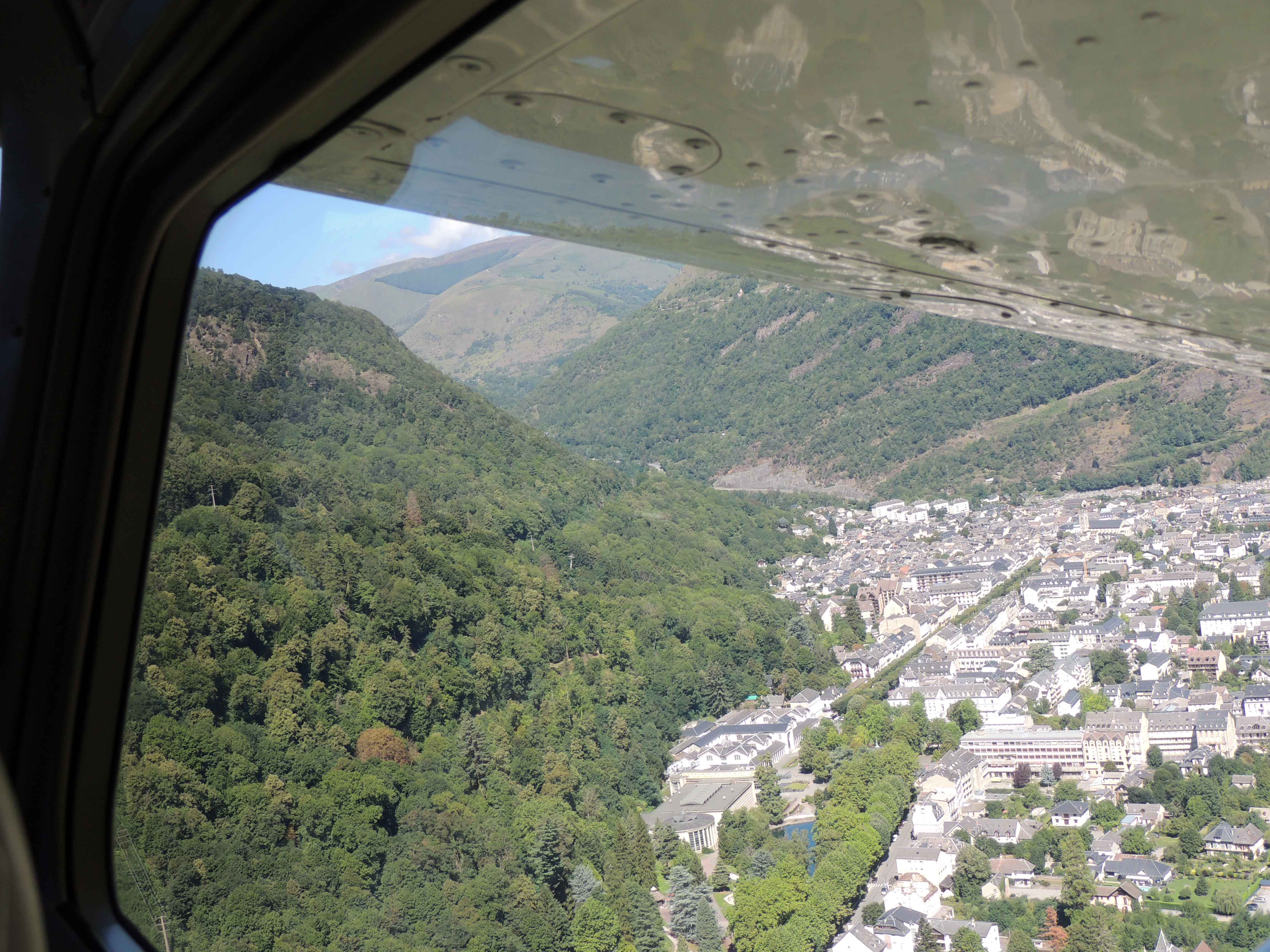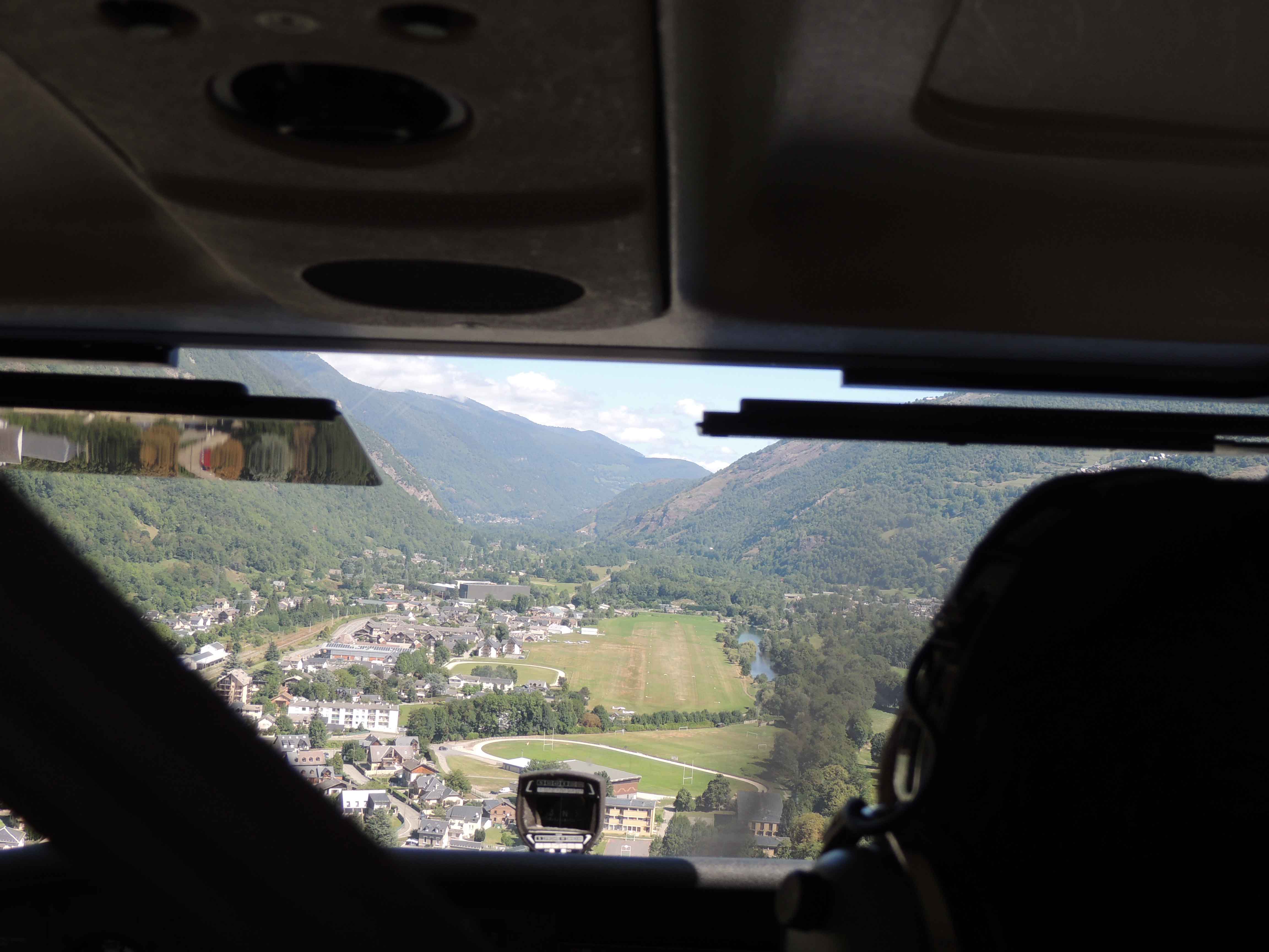 En ce dimanche 20 Août, c’était le temps idéal pour se rendre à Bagnères de Luchon depuis Périgueux. Valérie avait organisé les équipages, s’était renseigné sur la météo de la vallée et surtout retenu pour nous le restaurant. Tout était prêt pour la navigation, le briefing pour l’arrivée avec Jean-François notre instructeur, car le tour de piste n’est pas standard au creux de cette vallée encaissée et de plus la piste courte. Le Cessna 172 avait décollé le premier de Périgueux avec Guillaume aux commandes et Jean-François en place droite, suivi du Mousquetaire avec Jean-Louis et Patrice. Cap direct sur Saint Gaudens avant d’identifier la bonne vallée et de poursuivre sur la droite de la vallée en direction de CIERP, puis de LUCHON. Voici quelques photos de notre arrivée sur LUCHON et de notre retour vers Périgueux. Une navigation à faire et très formatrice sur le respect des procédures du vol en montagne et la maniabilité de l’avion.