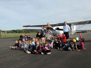 Tous les mercredis depuis le 20 septembre, l’aéroclub de Périgueux a accueilli les enfants des centres de loisirs du pays nontronnais. Le centre de Nontron a été le premier à profiter des activités proposées par l’aéroclub de Périgueux en partenariat avec le Centre Pédagogique Aéronautique, suivi sur les mercredis suivants, par ceux de Busserolles et de Saint-Pardoux-La-Rivière. Le vol à bord d’un avion a été pour beaucoup d’enfants une première. Quelques angoisses étaient perceptibles lors du premier vol de la journée, mais vite envolées devant la joie des copains au retour de la première rotation. Autre instant magique de la journée avec les pompiers présents sur l’aéroport, la possibilité de prendre la veste de pompier et de tenir la lance incendie. Il y avait également la joie des enfants en fin de journée de découvrir les avions de collection comme les Stearmans rouge et jaune, le T6 et piper J3. Au total c’est 130 enfants qui ont foulé le tarmac de l’aéroport de Périgueux-Bassillac.