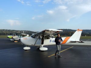 Voici une escapade agréable en direction du Puy en Velay avec le Cessna 172 de l’aéroclub de Périgueux et deux autres avions de la Plateforme, un mousquetaire et un cessna cardinal. Tempête de ciel bleu et pas un souffle de vent sur tout le trajet qui nous a emmené à survoler le Plomb de Cantal au niveau 75. Limoges Info, Rodez Info et enfin Clermont Info, histoire de pratiquer un peu la radio et avoir les infos trafic sur les éventuels appareils qui croiserez notre route, avec chaque fois le même rituel: » Vous connaissez le Lima Echo qui suit la même route que vous 2 nautiques à votre droite ». No comment, pas moyen de s’en séparer…., c’est cela quand on navigue avec un autre appareil sur le même trajet.