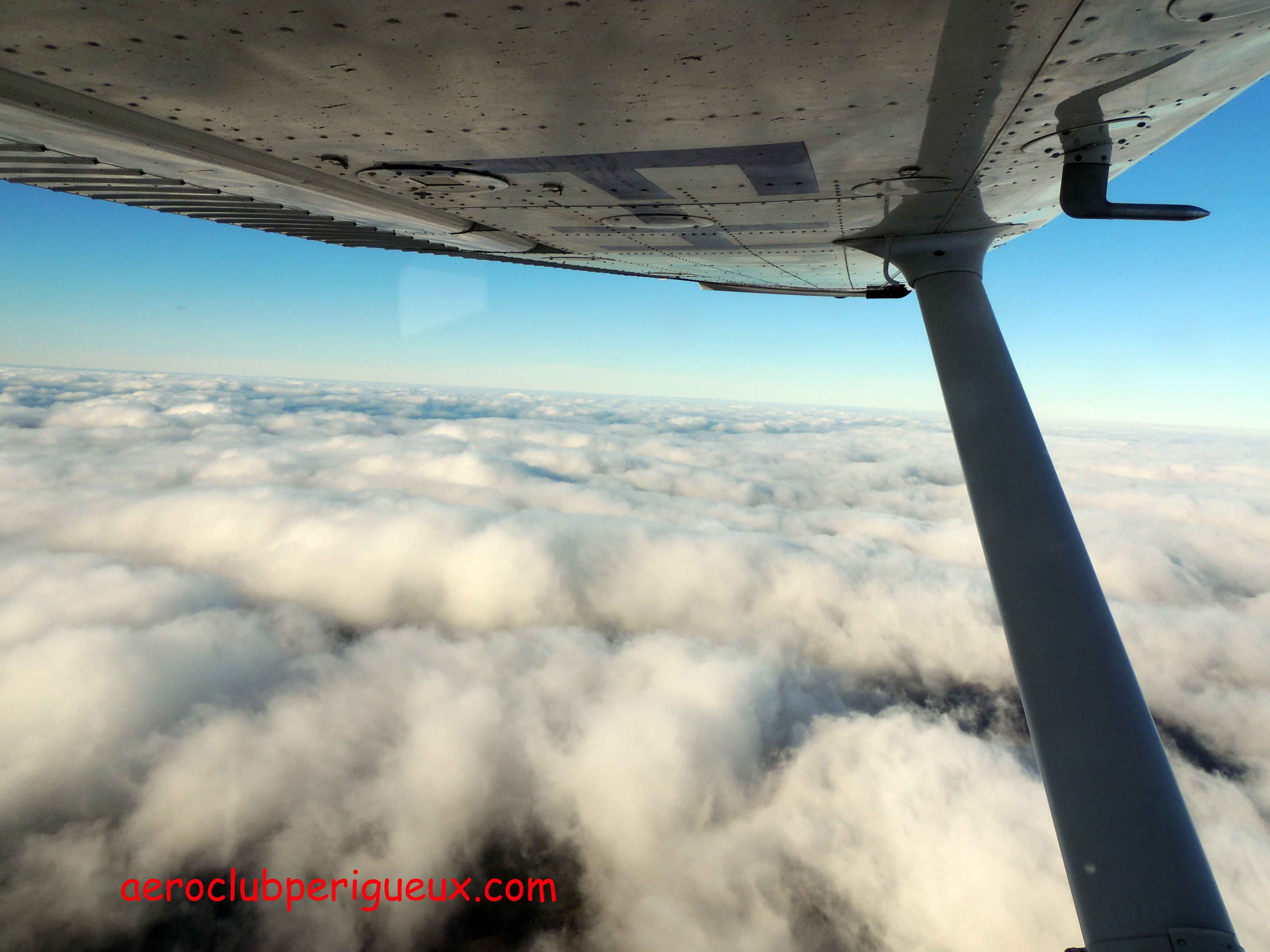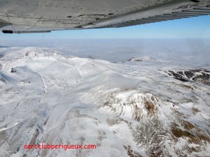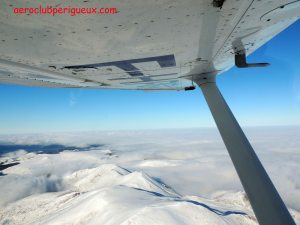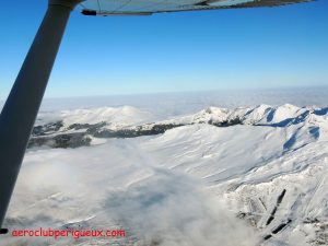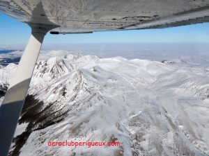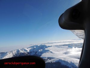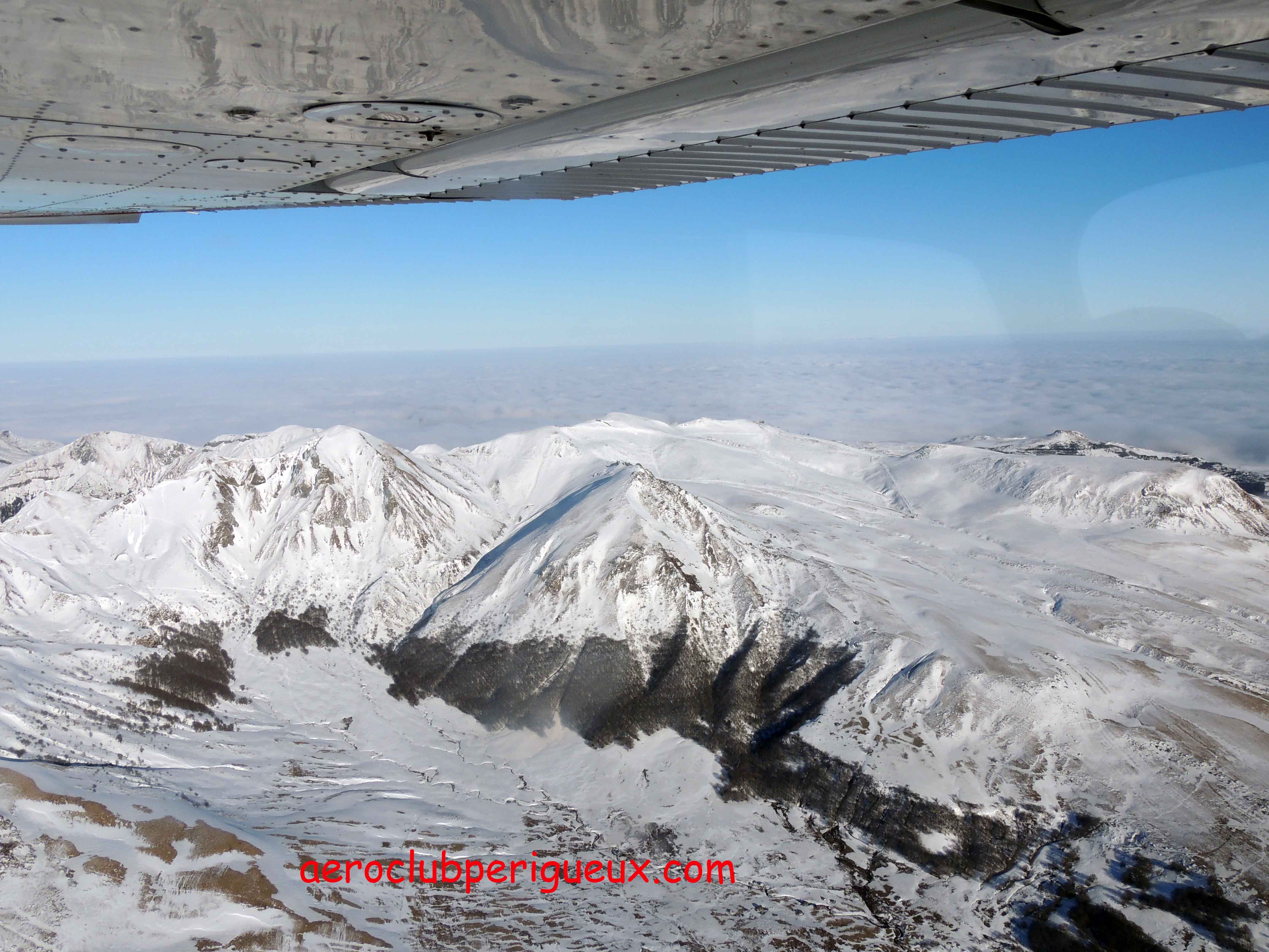 Après des conditions météorologiques désastreuses pour l’aéronautique de loisirs depuis début janvier, en ce samedi 27, le brouillard matinal de notre Périgord semblait vouloir se dissiper, laissant augurer un après-midi enfin favorable aux vols à vue. Un mail à tous les membres de l’aéroclub et nous nous retrouvons à quelques pilotes pour tenter une sortie vers le massif enneigé du Sancy. Un point Météo, une connexion sur les webcam du Sancy pour vérifier que ce dernier émerge des nuages, un peu d’essence dans les réservoirs et une visite prévol sérieuse et nous pouvons nous installer à bord de nos avions. 14h30 décollage, une montée au niveau 55, tout est parfait, la visibilité est bonne, nous sommes au dessus des nuages, avec déjà en ligne de mire le massif du Sancy. Activation du pilote automatique avec un GO TO sur Ussel LFCU et nous pouvons avec Hugo qui est élève pilote faire de la lecture de carte. Hautefort, Brive, l’A20, l’A89, les monts des monédières, Egletons, Meymac et enfin l’aérodrome d’Ussel qui est sous les nuages, mais peu importe, le but est de poursuivre jusqu’au Sancy qui se rapproche de plus en plus. Voir le Sancy enneigé, sous le soleil est un vrai régal pour Hugo, c’est toujours magnifique de pouvoir admirer ce massif du Sancy en cette saison et surtout avec autant de neige. Une grande boucle au niveau 65 autour de celui-ci, pour prendre quelques clichés et vérifier que la ville de Clermont-Ferrand était bien sous les nuages, comme noté lors du point Météo, qu’il faut déjà penser au vol retour sur Périgueux (LFBX). Voici quelques photos aériennes de ce vol.