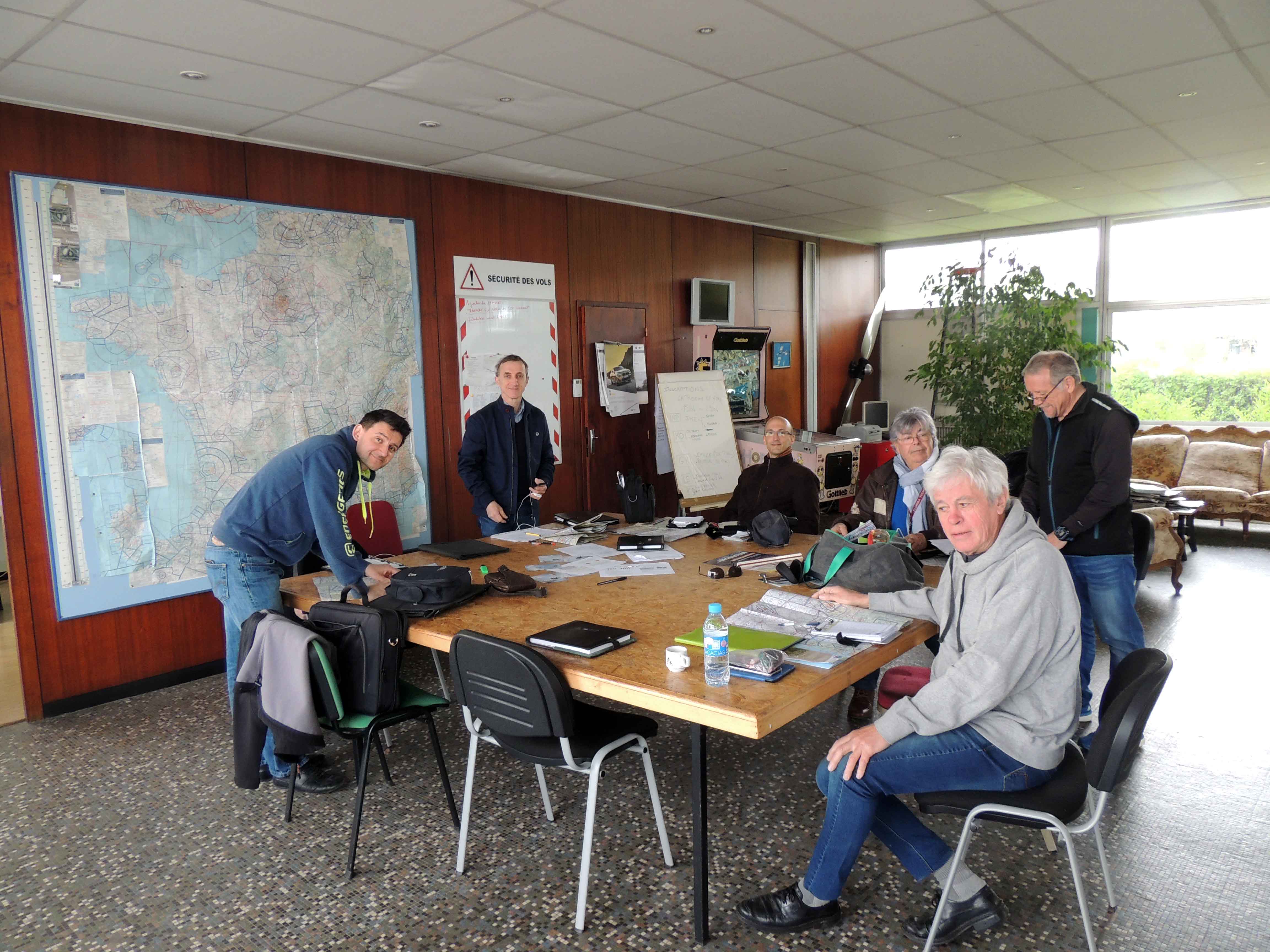 Comme d’habitude, les conditions météorologiques sur le secteur de la Vendée, notamment pour relier La Roche sur Yon ne permettant pas de réaliser en toute sérénité la sortie prévue. Un petit tour d’horizon en quête d’un restaurant pouvant accueillir 12 pilotes, seule l’escale à Châteauroux a répondu positivement. Cette nouvelle destination « Châteauroux-Déols » a obligé les pilotes à une préparation au pied levé de la navigation, préparation de la carte au 1/500 000eme, du log de nav, photocopie de la carte VAC, programmation des tablettes…