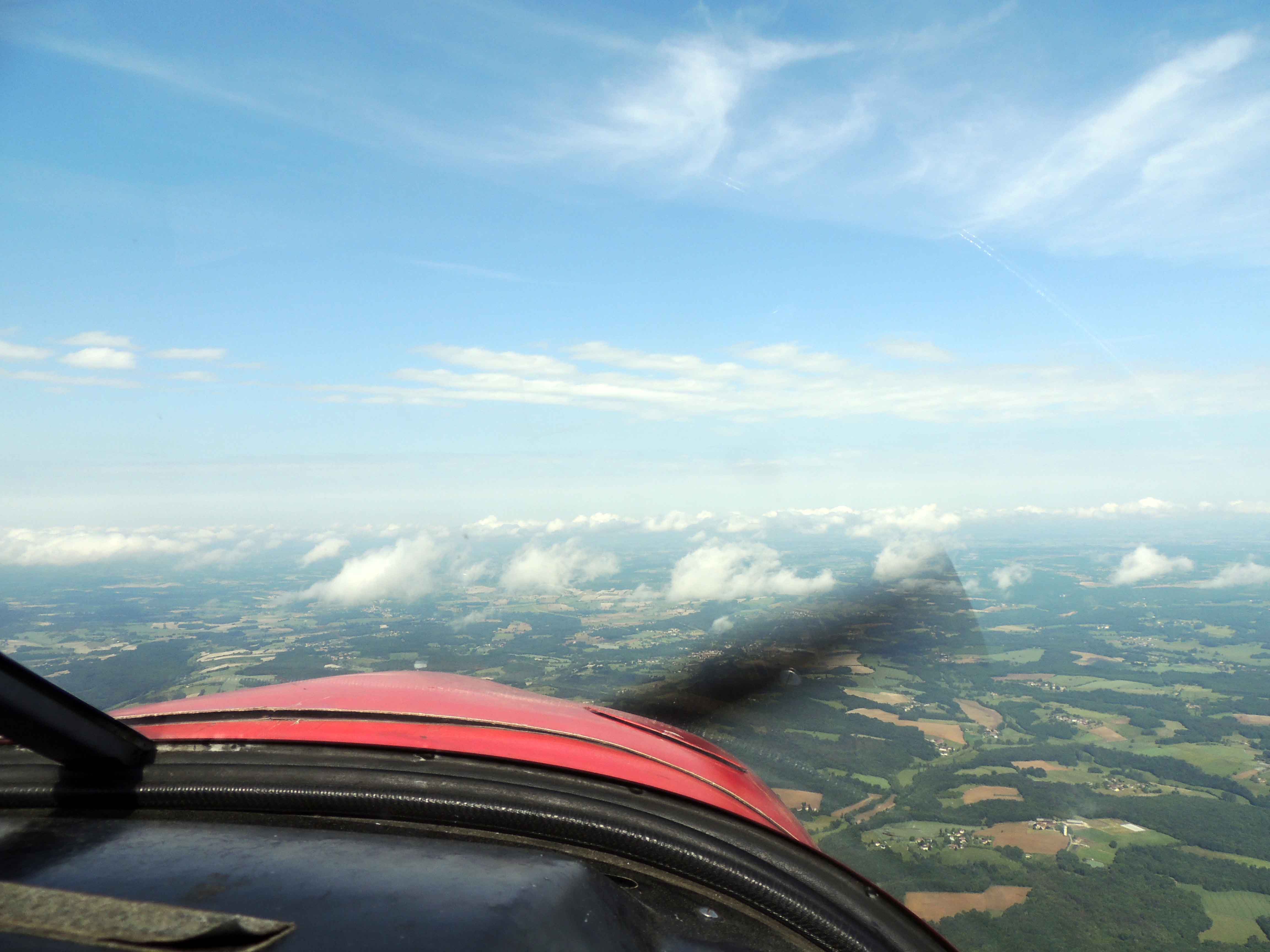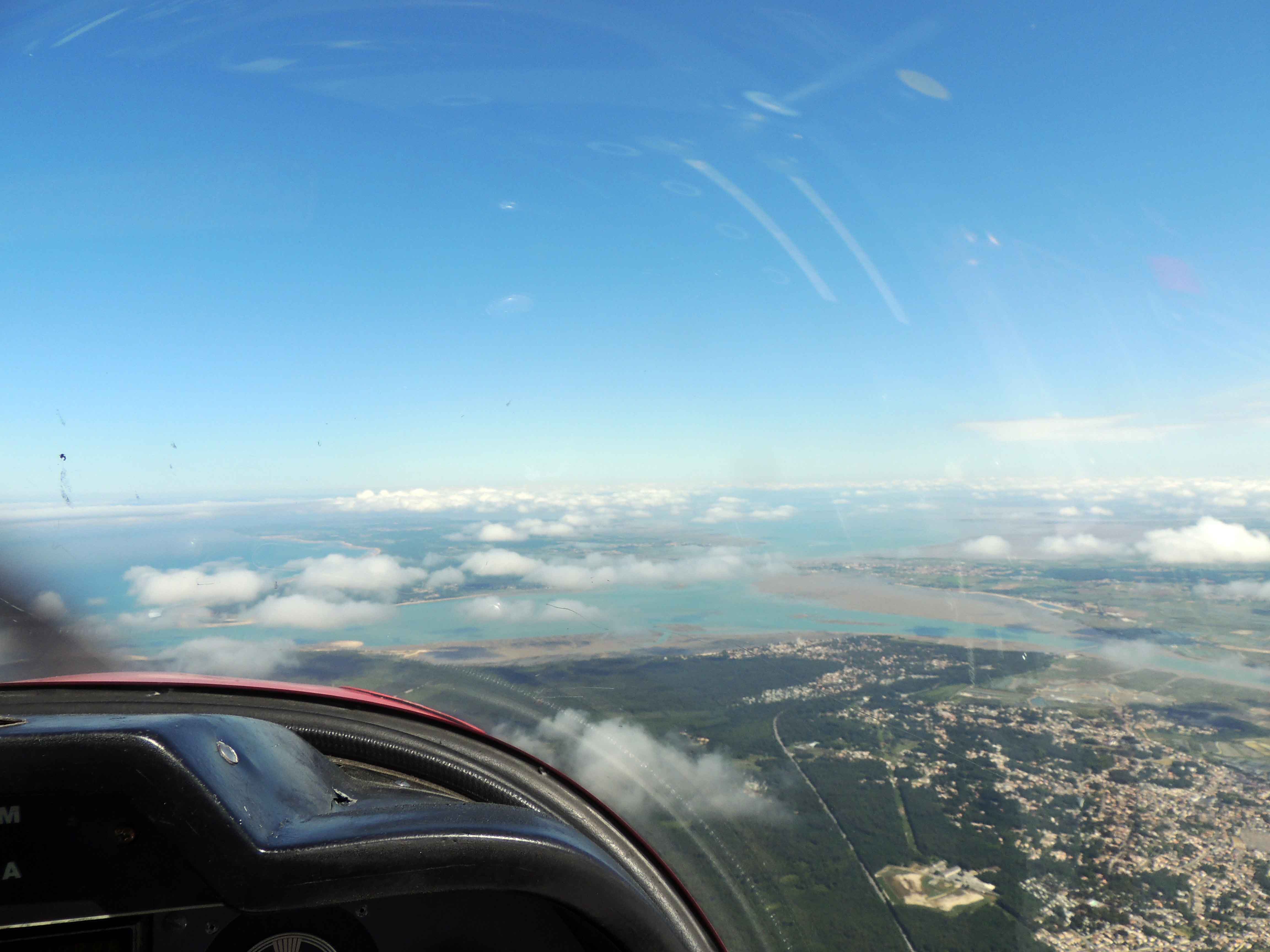 Pour nous en DR400, ce fût une bonne expérience, notamment pour mon pilote du matin; un vol agréable le matin au dessus des nuages et une arrivée sur l’île d’Oléron dégagée avec de belles photos à partager. Le retour depuis Royan, après la pause déjeuner, comme annoncé à la météo, un cumulonimbus couvrait le secteur d’Angoulême et des grains arrosaient notre DR400 qui cheminait d’aérodrome en aérodrome au cas où il faille interrompre le vol pour raison météo. Ainsi, Jonzac, Chalais, Ribérac, défilaient sous nos ailes, une occasion ainsi pour les pilotes de bien identifier ces plate forme aéronautique.