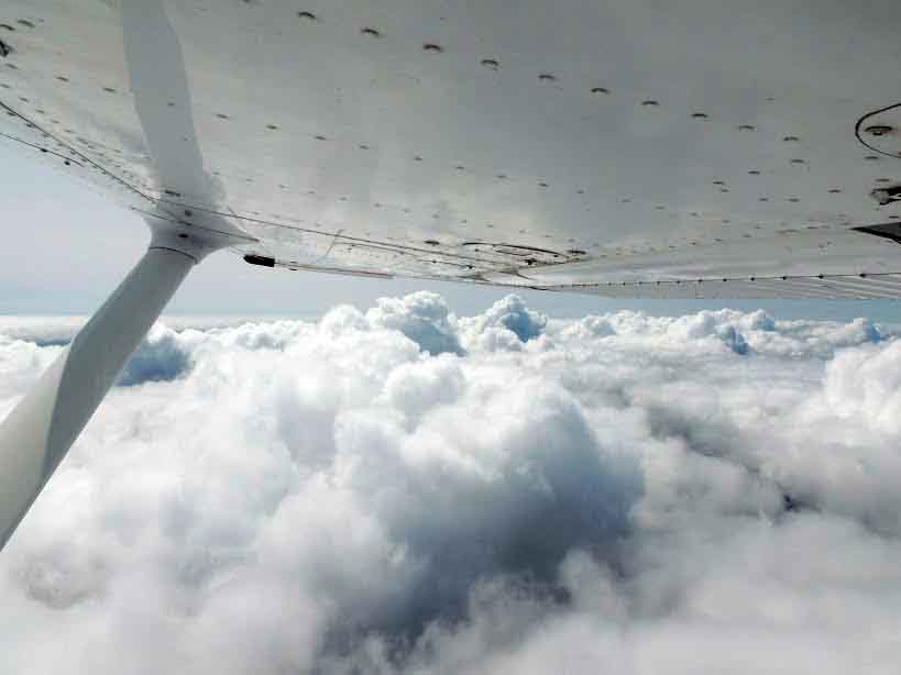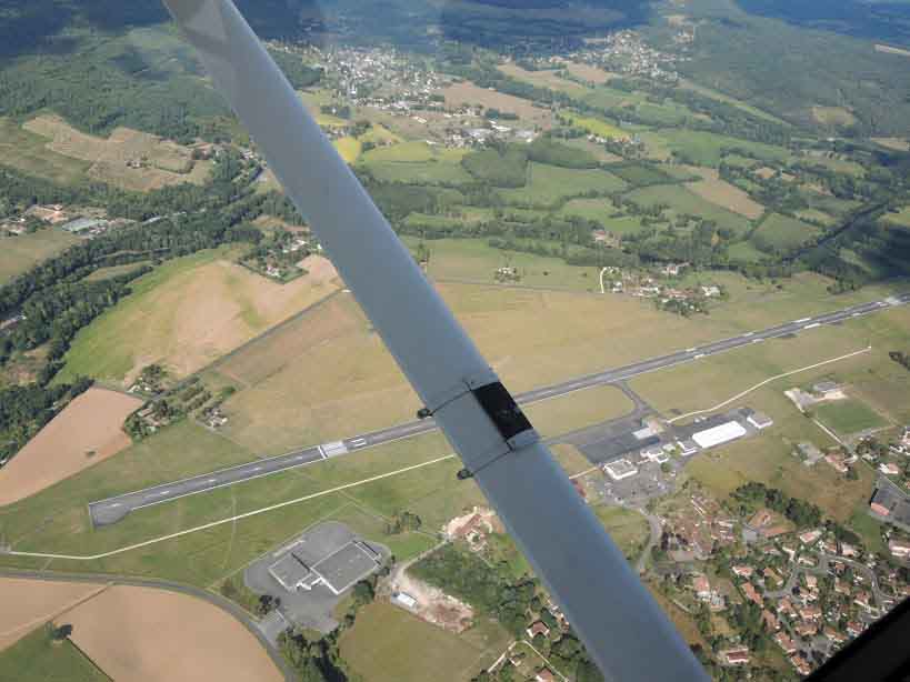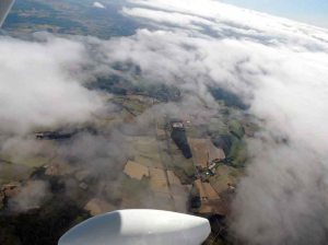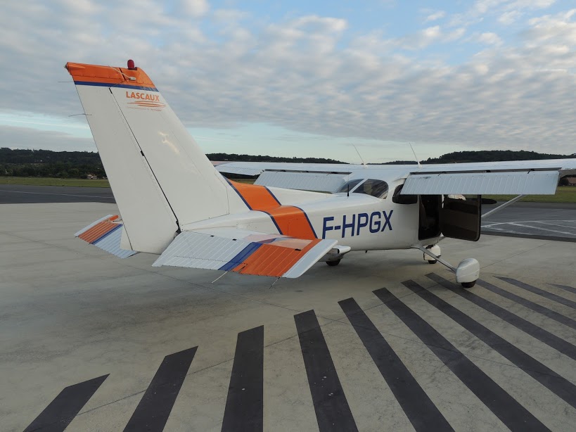 Nous sommes très bien accueillis sur ce terrain, où nous mangeons rapidement avant de redécoller pour Périgueux. On trouve de nouveau une trouée pour passer au-dessus de la couche et nous revoilà en route pour Périgueux. Nous contactons la fréquence d’approche de Nantes pour transiter dans leurs espaces et au niveau de la ville de Nantes, le contrôleur nous informe que les zones militaires de Cognac sont actives et que nous allons devoir les contourner. Avec l’aide du contrôleur, nous faisons donc un direct sur Poitiers avant de transiter dans un couloir aérien vers Cognac puis nous reprenons enfin notre route sur Périgueux. Et 2h45 après avoir décollé de Vannes, les roues de notre Cessna foulent enfin le tarmac de Périgueux et nous avons des souvenirs plein les yeux.
