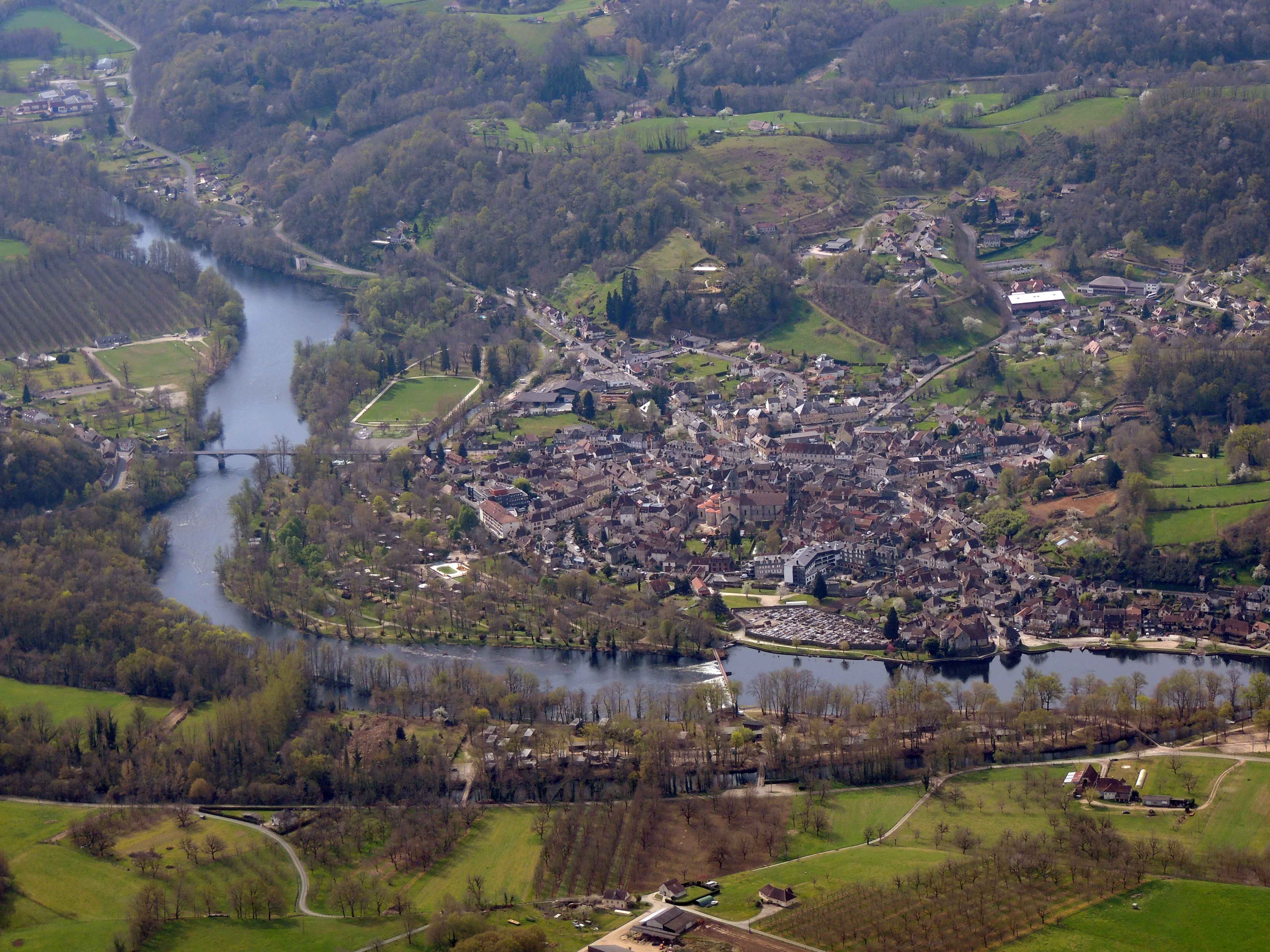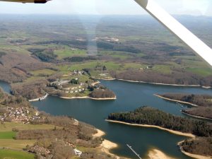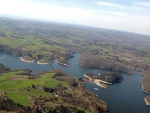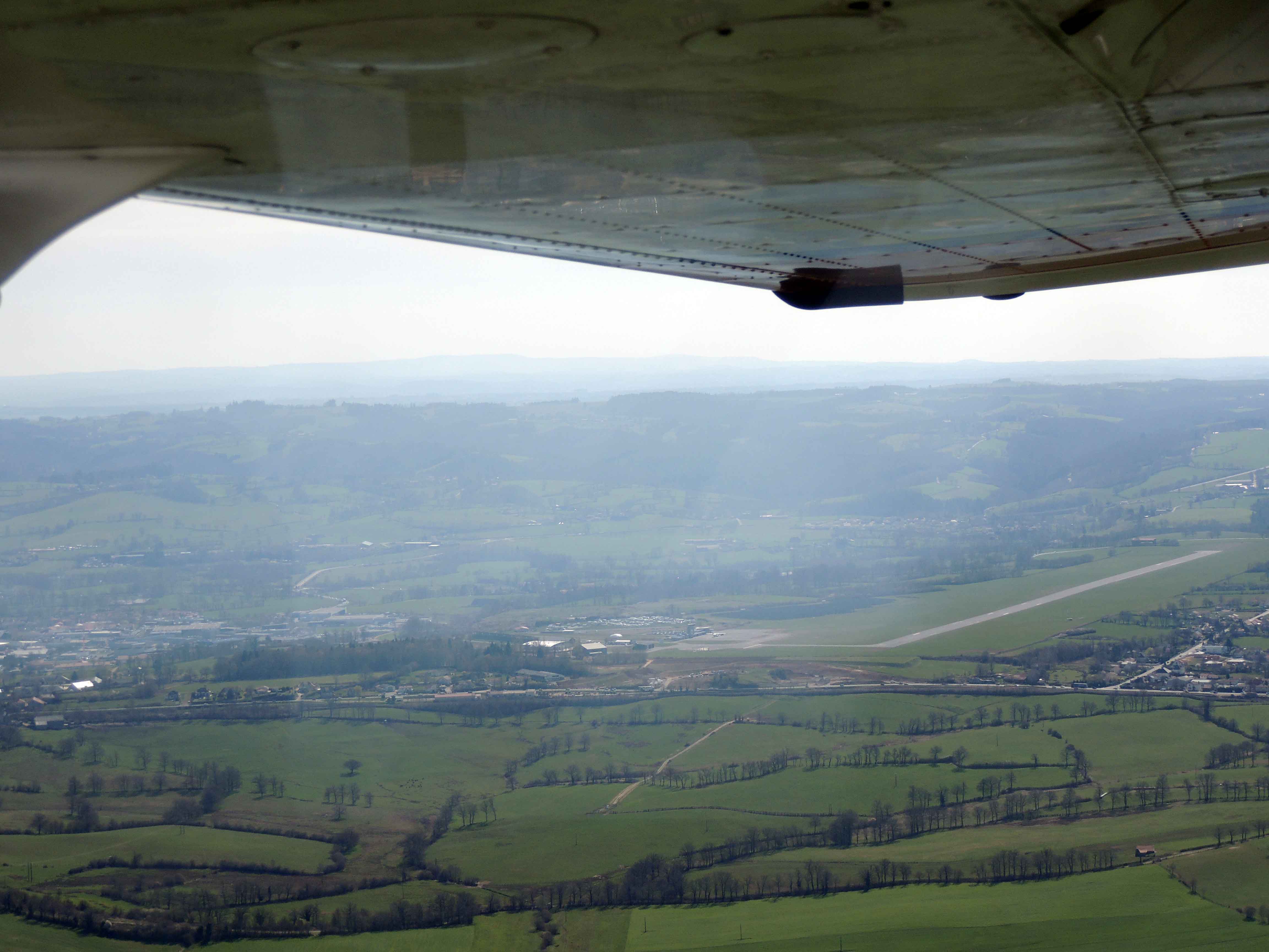 La deuxième quinzaine de mars a été propice aux vols en avion, mais début avril s’annonce plus perturbé et guère engageant pour de longs vols vers les aérodromes de la région. Les conditions météorologiques de ce lundi premier avril (et ce n’est pas un poisson..) sont encore favorables pour un vol à destination d’Aurillac au départ de Périgueux. Bernard s’installe aux commandes du Cessna 172 de l’aéroclub de Périgueux sous la supervision de notre instructeur assis en place avant droite, me permettant ainsi de me faufiler sur la banquette arrière afin de profiter du paysage pour le vol aller et de prendre quelques photos du parcours. Départ au cap 104 avec un petit vent d’Est, mais les 110 noeuds sont largement conservés sur tout le parcours. Le village de Thenon, la piste privé de Condat sur Vézère, Beaulieu sur Dordogne, la vallée du Célé, le lac du barrage de Saint Etienne de Cantalès, puis la ville d’Aurillac sont de magnifiques repères pour la navigation du jour.