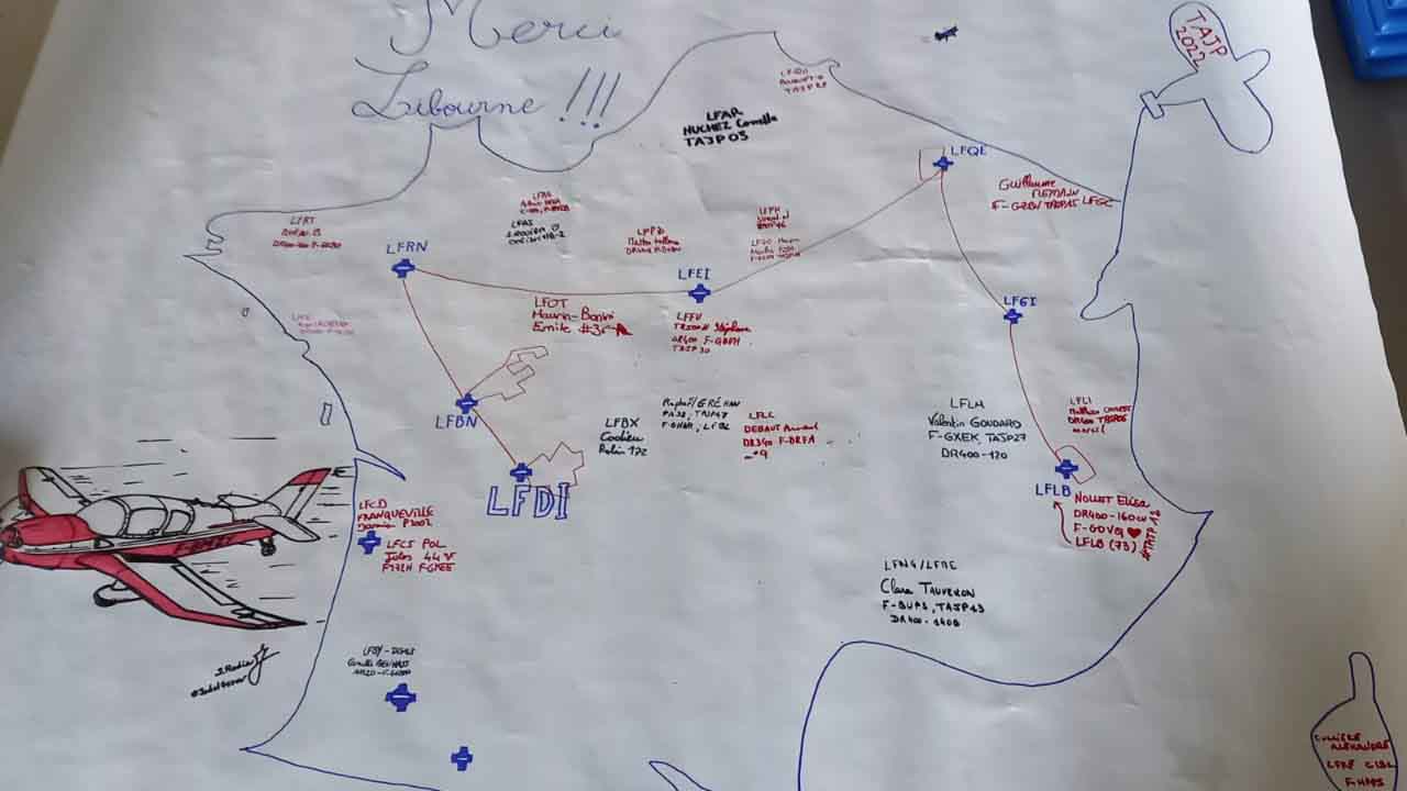 Les jeunes pilotes du tour aérien ont fait étape deux jours sur l’aérodrome de Libourne. A menu: – épreuve de rallye aérien le matin comme cette navigation autour de l’estuaire de la gironde à proximité de Bordeaux et également vers le nord de la Gironde et les Charentes- Visite du village de Saint-Emilion, vol en Antonov AN2 , – journée « Portes Ouvertes » à l’aéroclub de Libourne. Un gros travail de préparation des navigations, notamment pour Robin Cadieu, mais aussi une grosse satisfaction de faire un vol en Antonov AN2. Avec à la descente de l’avion un visage tout sourire, un vrai rêve d’enfant.
