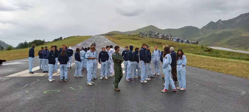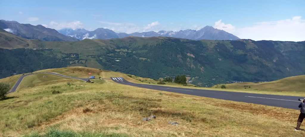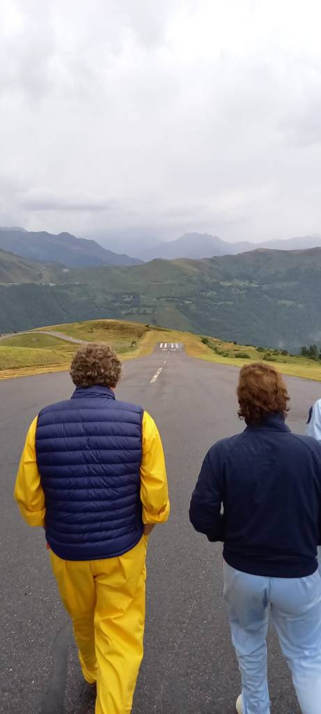 Vendredi 29 juillet direction l’altiport de Peyresourde en bus pour les jeunes pilotes du Tour Aérien. Combinaisons et blousons sont de mise à cette altitude. Impressionnant cette piste avec une pente à 15%, impressionnant également l’atterrissage d’un avion, on comprend qu’une qualification montagne et de site soit requise pour cet altiport. c’est un regret pour ces jeunes de ne pas avoir pu relier en avion depuis Tarbes ce site. On comprend la difficulté d’organiser pour ces 45 pilotes un vol à destination de cet altiport de Peyresourde. Robin a compensé ce manque par un vol en avion électrique « Le velis électro » et un autre vol en montagne avec un EVEKTOR.