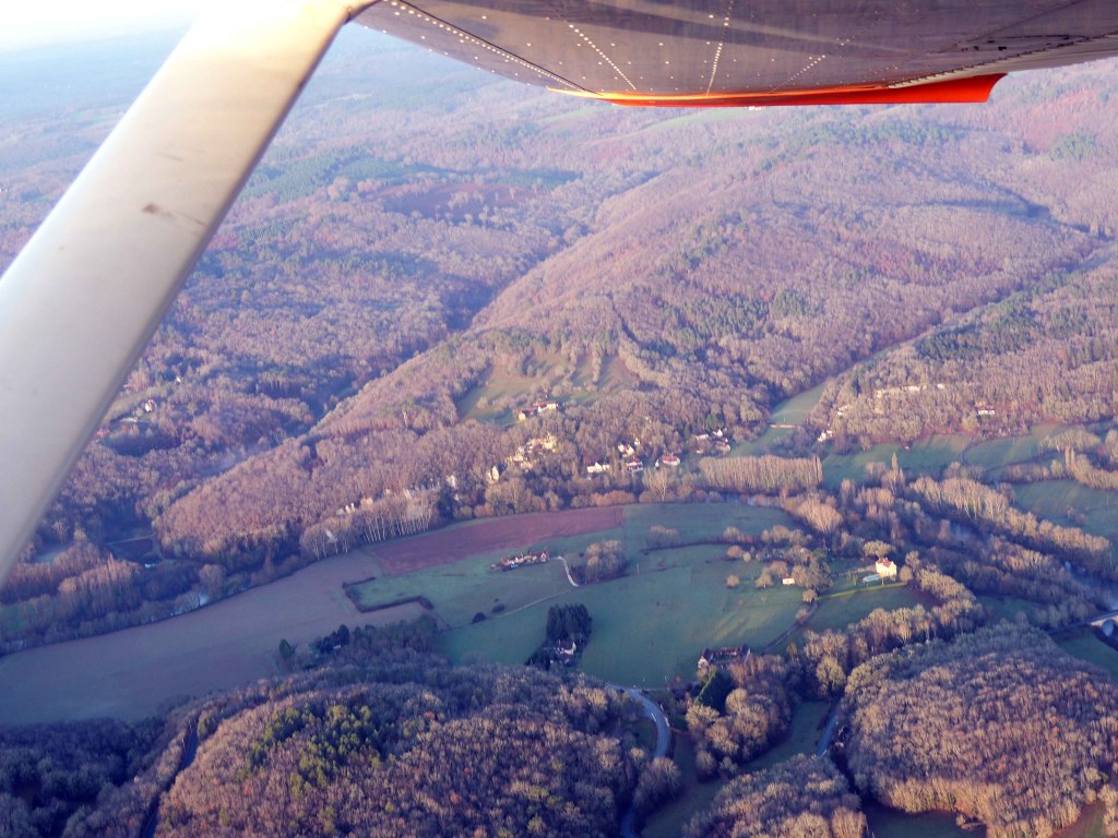 En ce premier janvier 2023, direction la vallée de la Vézère avec le cessna 152 de l’aéroclub de Périgueux. Un beau levé de soleil, un peu de vent du Sud, encore quelques brumes dans le fond des vallées, la luminosité est un peu faible pour les photos, on a adapté le vol en fonction de ces paramètres, afin de réaliser malgré tout quelques photos.