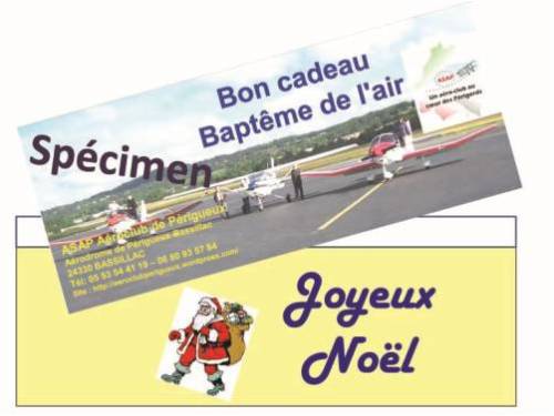 Vous cherchez une idée de cadeau à mettre sous le sapin de Noël, l‘aéroclub de Périgueux-Bassillac est en mesure de vous proposer des bons de vol pour survoler le Périgord ou découvrir le pilotage d’un avion léger.