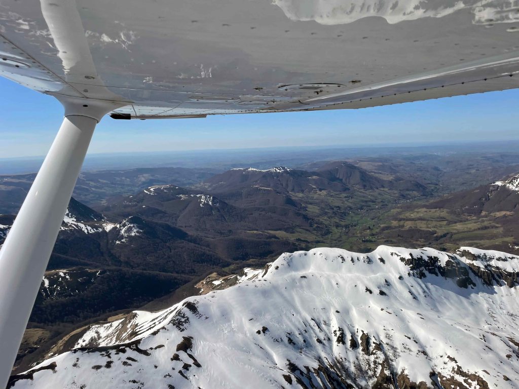 En ce samedi 4 avril c’est la météo parfaite pour entreprendre un voyage vers le Puy en Velay au départ de l’Aéroclub de Périgueux-Bassillac avec le Cessna 172 de l’Association. Une navigation qui permet le survol du massif du Cantal encore enneigé. Voici quelques photos de ce massif et une vidéo