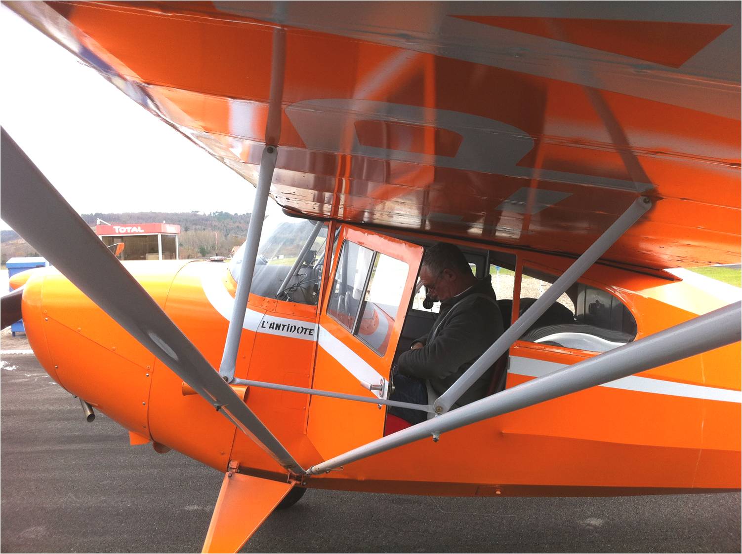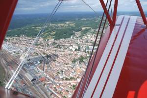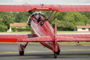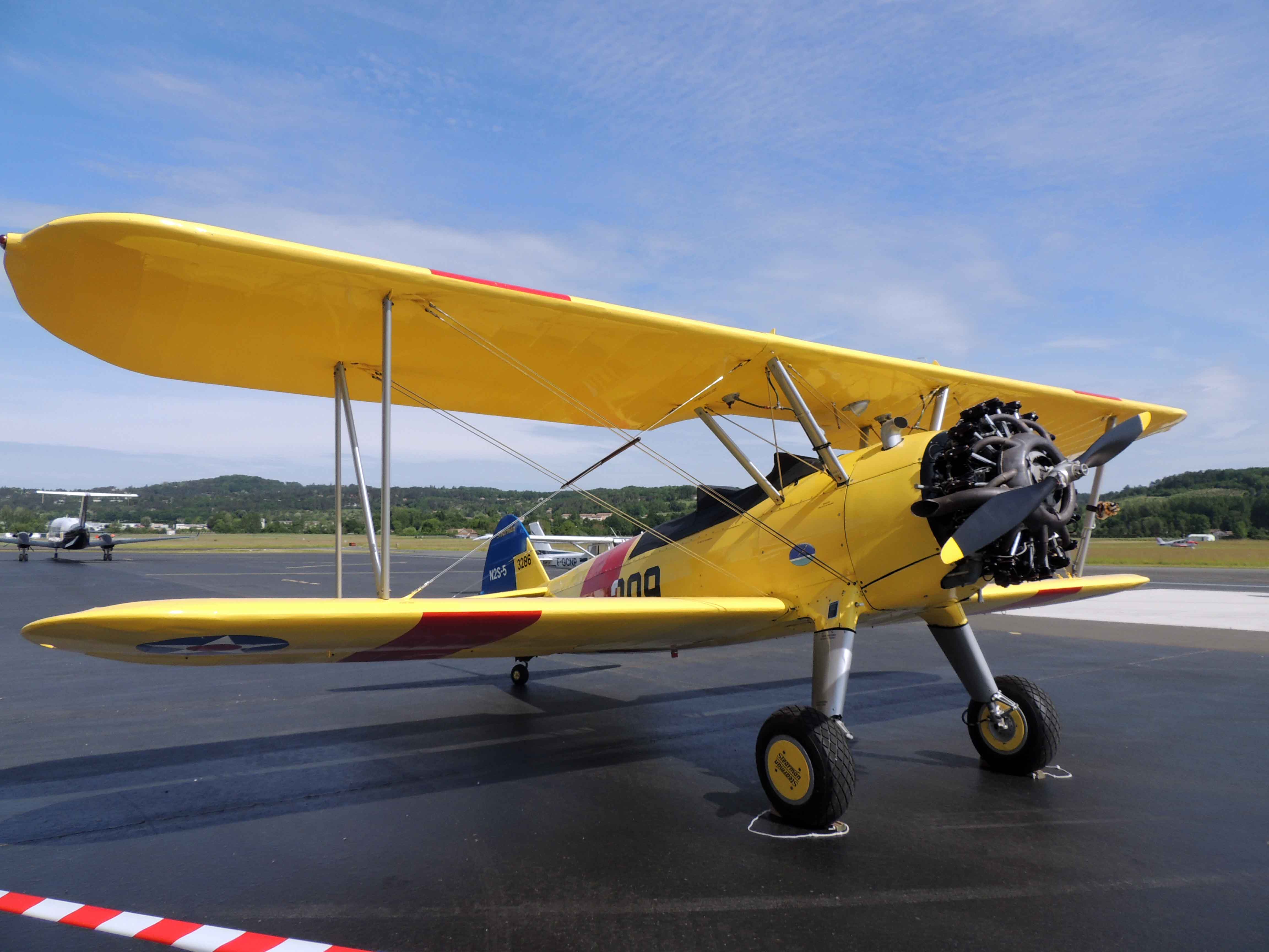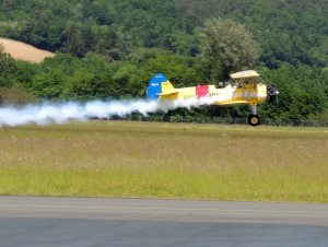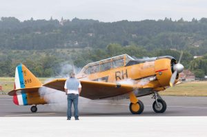 Un boeing STEARMAN PT13 d’un rouge éclatant, que vous avez peut être déjà aperçu dans le ciel périgourdin et dont le ronromement typique du moteur 9 cylindres en étoile ne vous est pas encore familier. Vous pouvez visiter le site de l’association qui possède de stearman en cliquant sur le lien suivant: hiram-aviation.