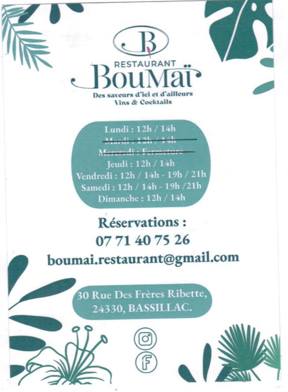 - Le BouMaï : situé à dans le bourg de Bassillac à 10 minutes de marche: tel: 07 71 40 75 26