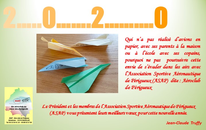 Publié dans Actualités de l-aeroclub, Nouvelles | Étiquettes : aeroclub de perigueux, aeroclub dordogne, aeroclub perigord, avions en papier, meilleurs voeux