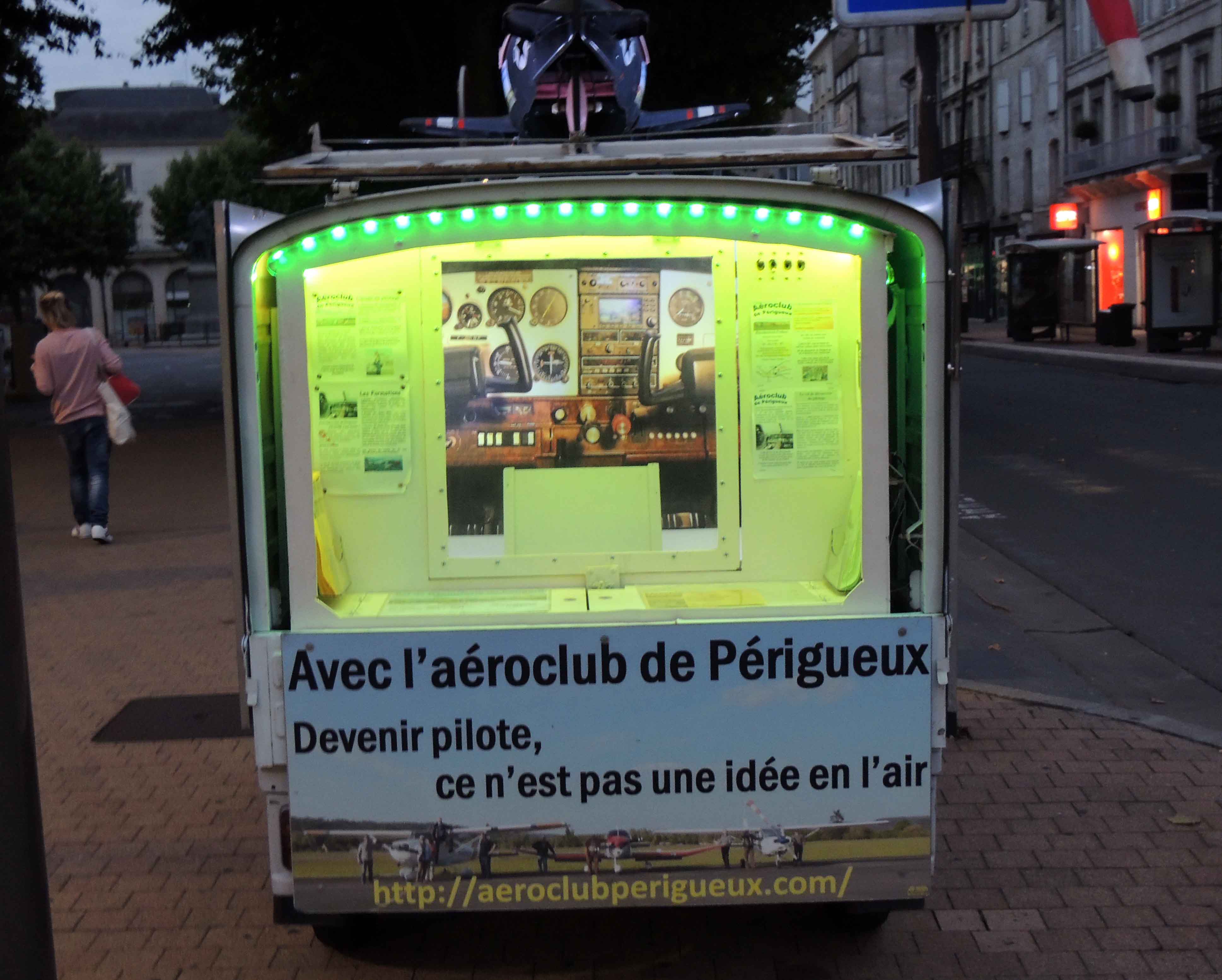 Retrouvez, tous les mercredis soir, les avions à pédales et le triporteur de l’aéroclub de Périgueux-Bassillac sur les marchés gourmands de la ville de Périgueux. Venez avec vos enfants, c’est toujours pour eux un instant agréable de pouvoir pédaler sur ces drôles de machines sur les Boulevards place Bugeaud.